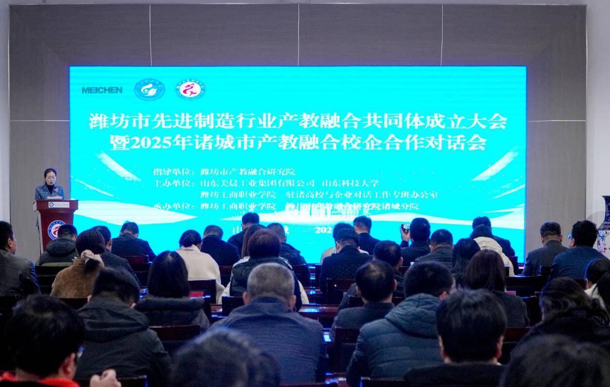 齐鲁网·闪电新闻11月28日讯 11月28日,潍坊市先进制造行业产教融合共同体成立大会暨2025年诸城市产教融合校企合作对话会在潍坊工商职业学院举行。