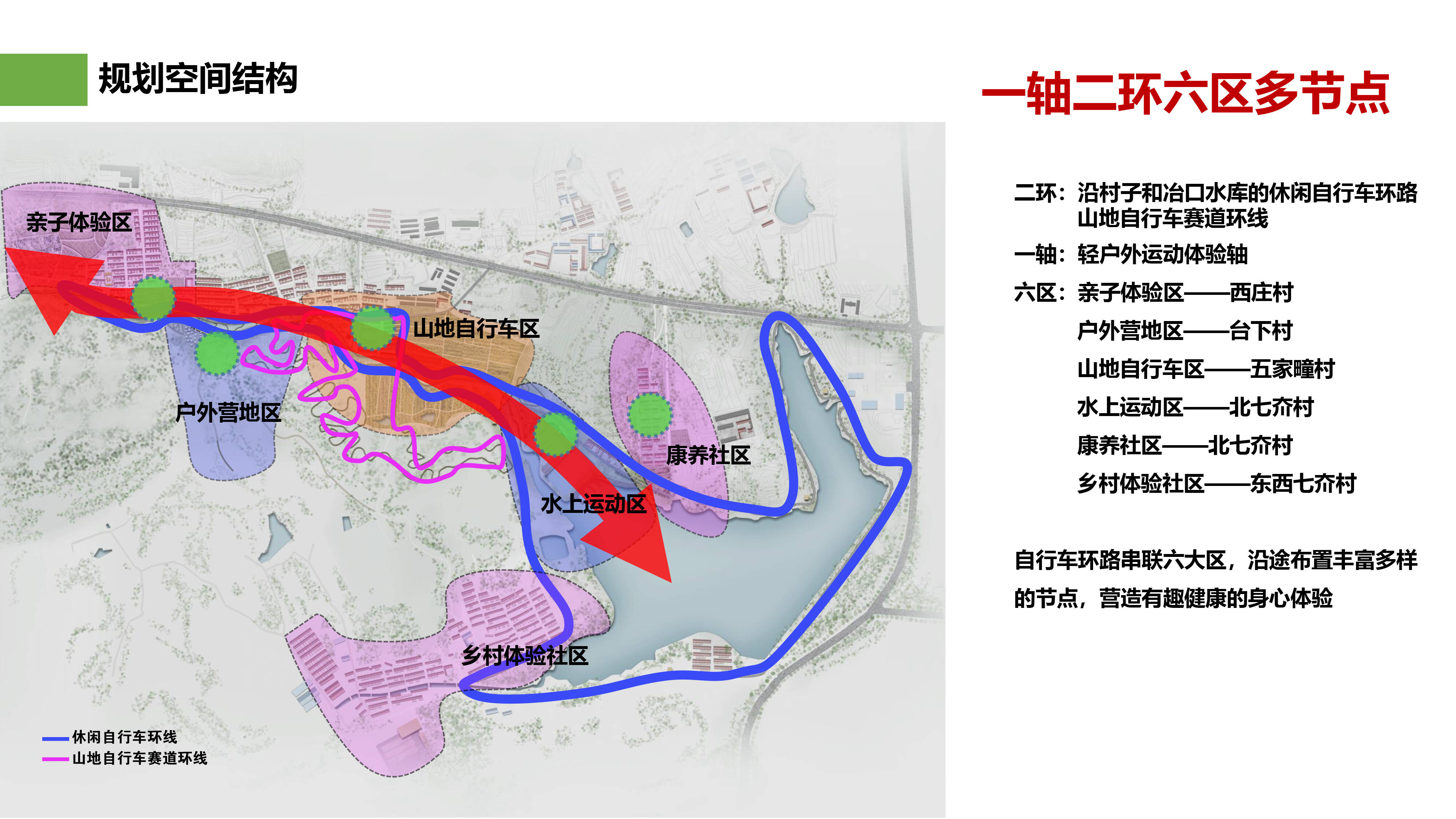 “这原来是4个村子,老辈儿村民采石盖房,山上留下的矿坑全是裸露的岩石,风一吹就落灰,一到下雨就流黄泥汤,别说花草树木了,连条像样的路都没有。”小镇村村民岳吉叶告诉记者。脆弱的生态环境,制约着当地的发展。为此,小镇村坚持优化生态布局,在抓生态保护的同时统筹乡村建设发展,确定了“一轴——两环——六区”的总体布局;合并周边4个村落,规划设置31个特色节点,形成错位发展的产业布局。
