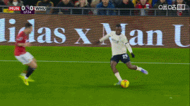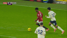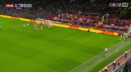 第40分钟,曼联前场任意球机会,球送到禁区后点,库尼亚头球摆渡送门前,阿玛德倒钩射门踢飞了。↓