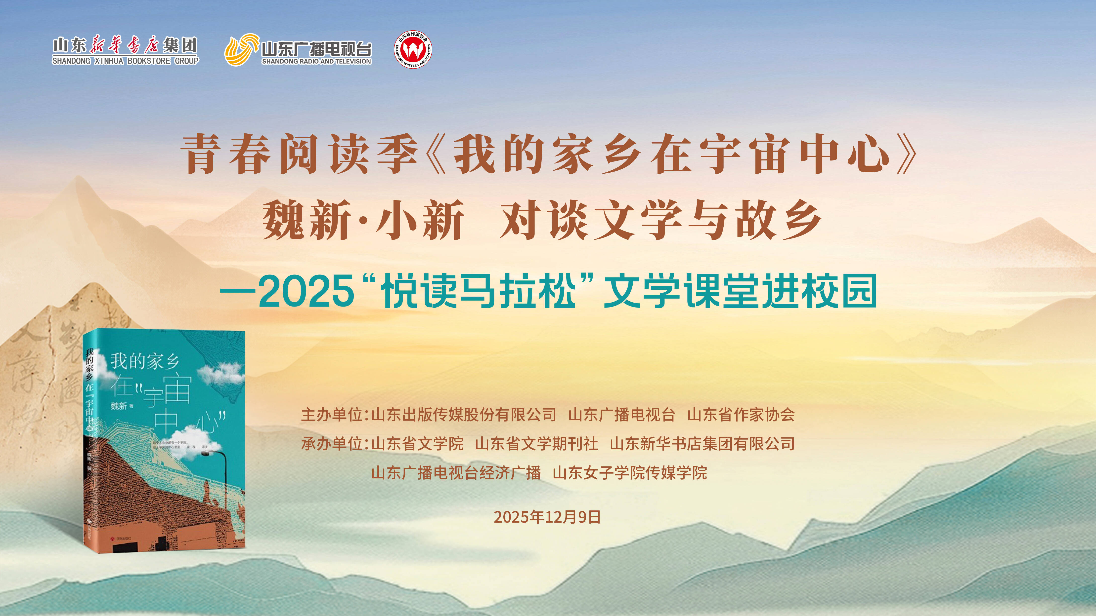 据了解,本次“青春阅读季《我的家乡在“宇宙中心”》魏新·小新对谈文学与故乡”分享会由山东出版传媒股份有限公司联合山东广播电视台、山东省作家协会共同发起,山东省文学院、山东省文学期刊社、山东新华书店集团有限公司、山东广播电视台经济广播、山东女子学院传媒学院承办。