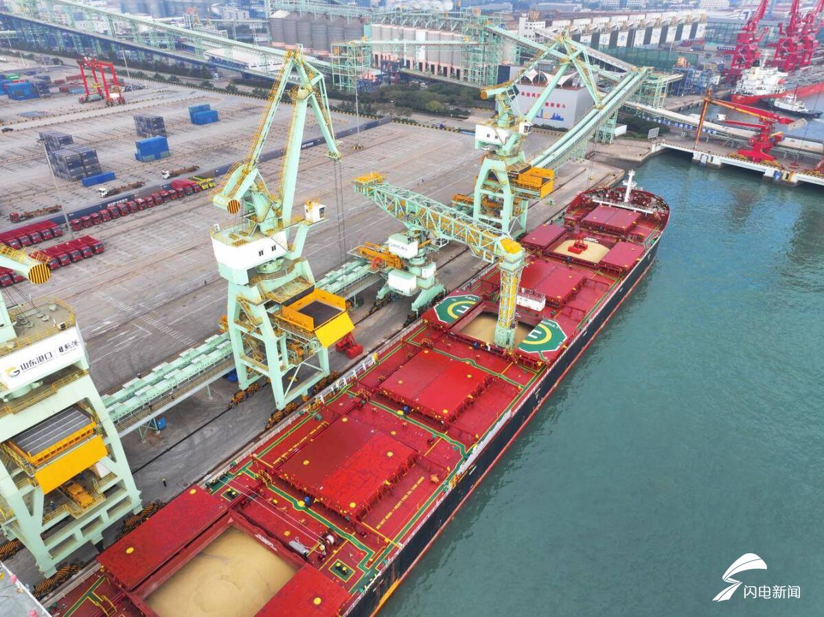 作为我国粮食供应链的关键节点,山东港口日照港还研发投用自动化粮食连续卸船机,突破国外技术垄断,实现核心技术与关键部件100%国产化自主研发,填补了我国在粮食自动化连续卸船技术领域的空白。项目创新螺旋取料、带斗垂直提升及水平输送、动态无尘转料衔接、全自动作业控制及安全防护“四大技术”,卸船最大工作效率1500吨/小时,达到国际领先水平。该卸船机在小时效率提高25%的基础上,吨耗电从0.4度降至0.34度,年节电达185万度,破板结能力提升80%;单舱清舱量降至13%,比同类设备降低48%。