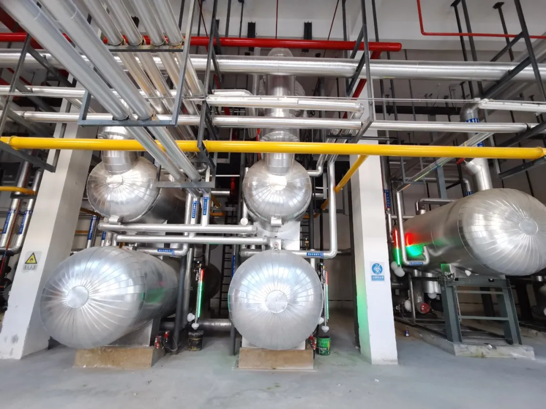 在机房内,制冷压缩机组、冷凝蒸发撬块等核心制冷设备低沉轰鸣,这里是整个制冷系统的“心脏”,采用的是国内领先的制冷技术。