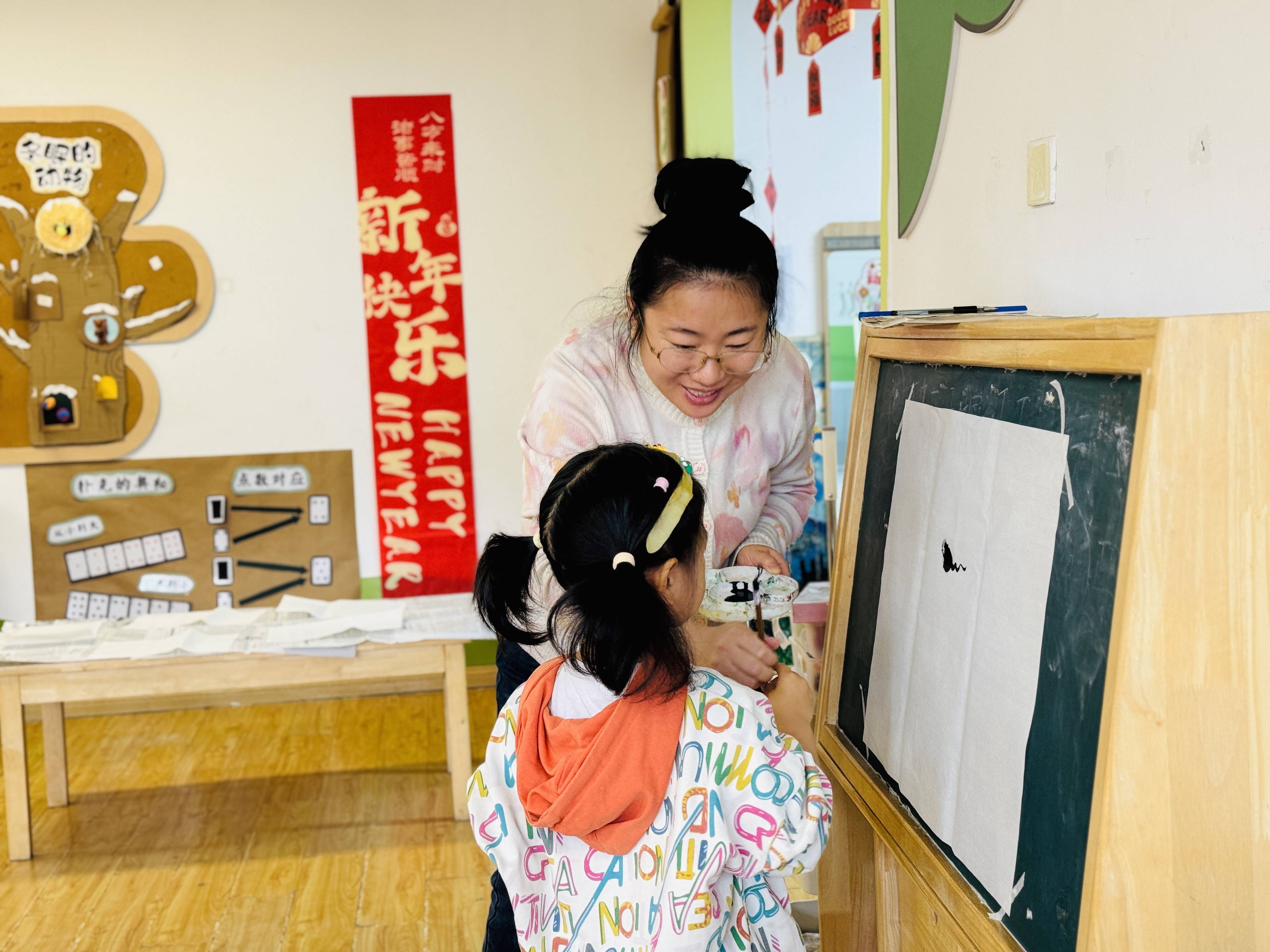 活动中,教师结合幼儿认知特点,通过趣味讲解与现场示范,向孩子们介绍了毛笔、宣纸、墨汁等水墨画基础工具,演示了握笔、蘸墨、运笔等基本技巧,引导幼儿认真观察、规范操作。此次活动让孩子们在实践中体验了水墨画创作的乐趣,初步领略了中华传统文化的独特魅力,有效提升了幼儿的动手能力与艺术素养。