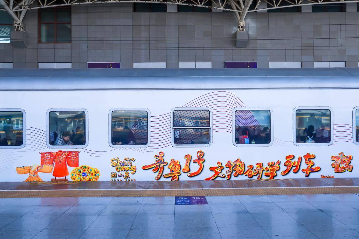 中泰证券冠名的“好客山东・齐鲁 1号”文物研学主题旅游列车,由硬卧、软卧、娱乐车厢、餐车、硬座等10节功能车厢编组而成,列车车次编号为 K4016/7、K4015/8次。列车每日开行,串联泰安、济南、晏城、聊城、冠县、广平、邯郸等地,构建起一条贯穿齐鲁文化脉络、延伸至燕赵大地的动态研学走廊。