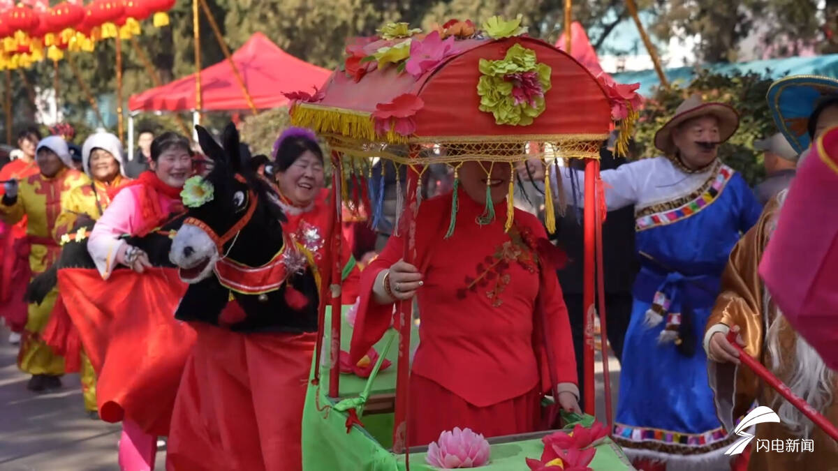 民俗节目演员姜春盈说:“我们是民间艺术团,今天来到浮来山景区表演节目,希望为各位父老乡亲们带来欢乐,祝大家马年吉祥。”游客王润芝说道:“今天天气特别好!我们来浮来山风景区,看看千年银杏树,再看看热热闹闹的民俗表演,一家人热热闹闹过新年!”