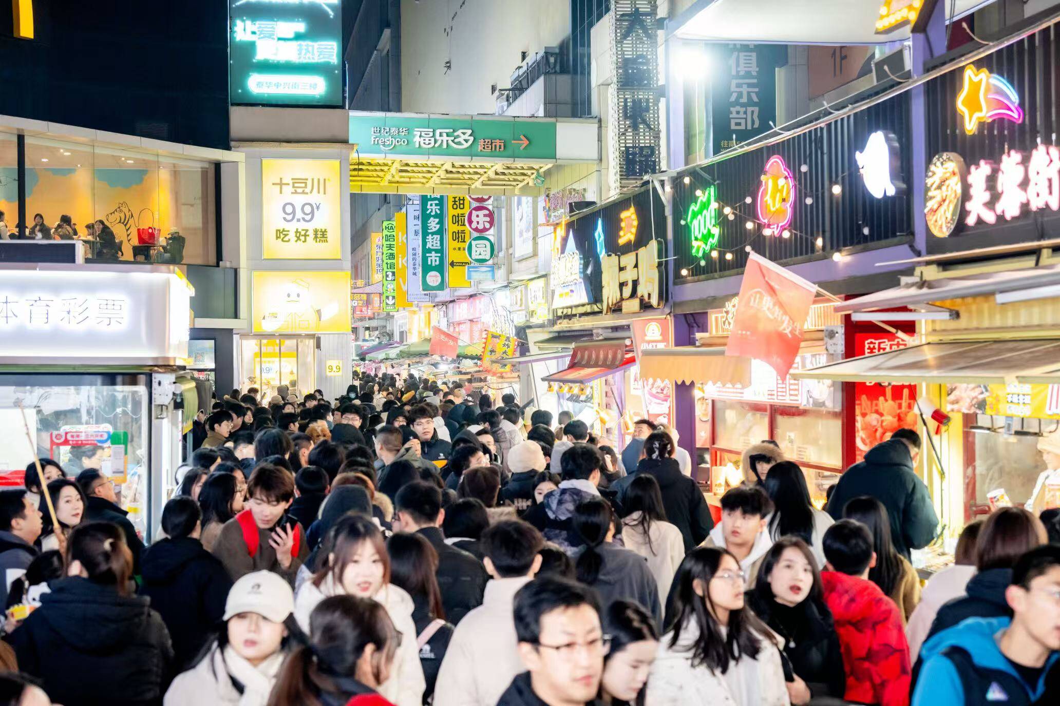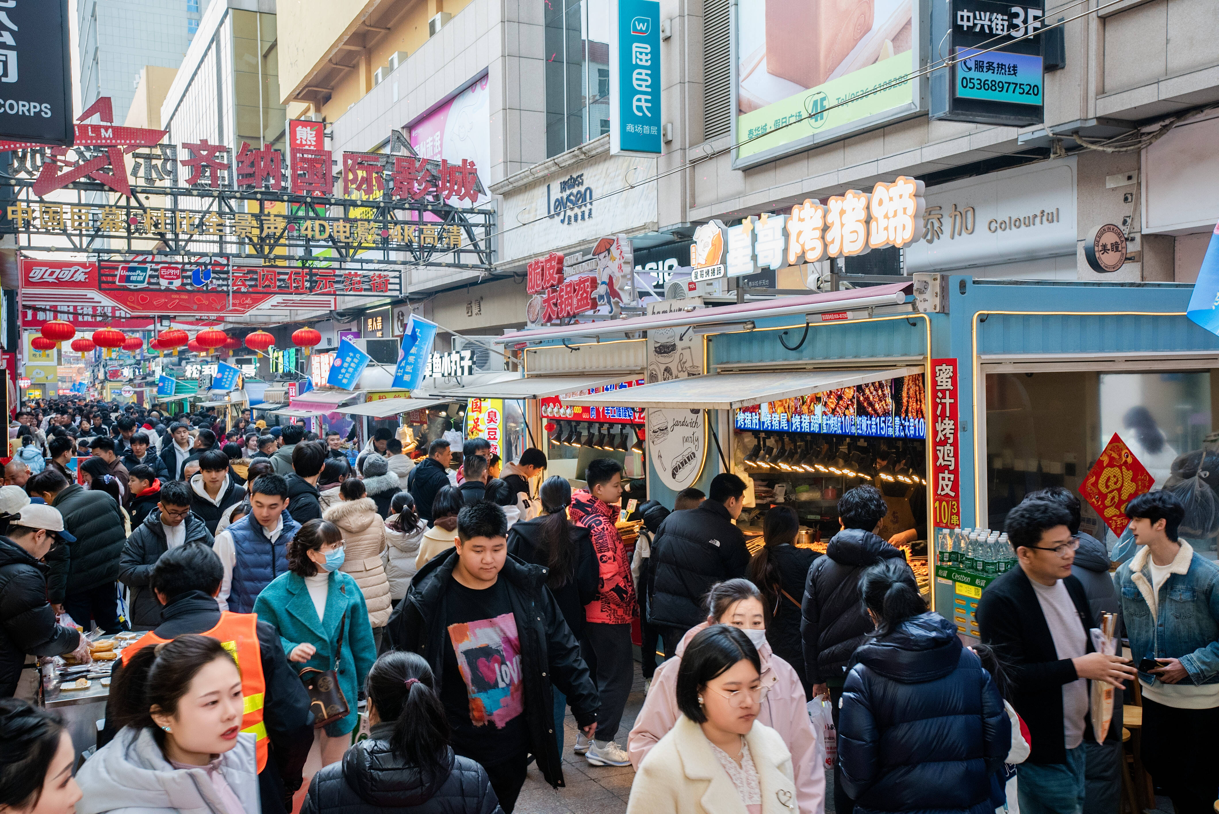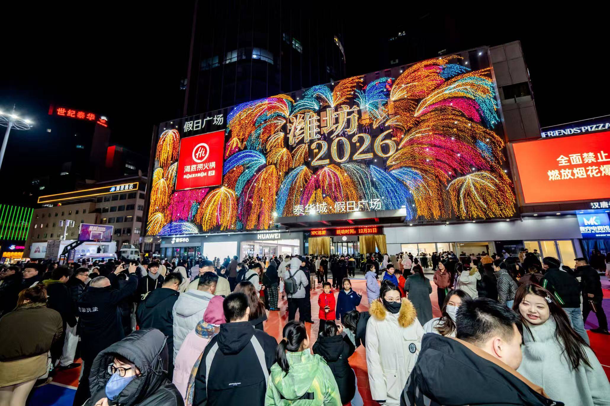 泰华城城市综合体推动餐饮+购物+娱乐+民俗深度融合,推出餐饮满额赠购物券、购物满额享餐饮折扣、消费赠电影票等跨业态联动活动,融合单品、套餐、代金券、满减四大优惠模式,提升消费灵活性。同步开放民俗大集、民俗展演、儿童游乐、影院等配套场景,举办“更好潍坊开门红”促消费、庙趣雅集等主题活动,构建吃购娱游享一体化消费闭环,延长停留、带动复购。