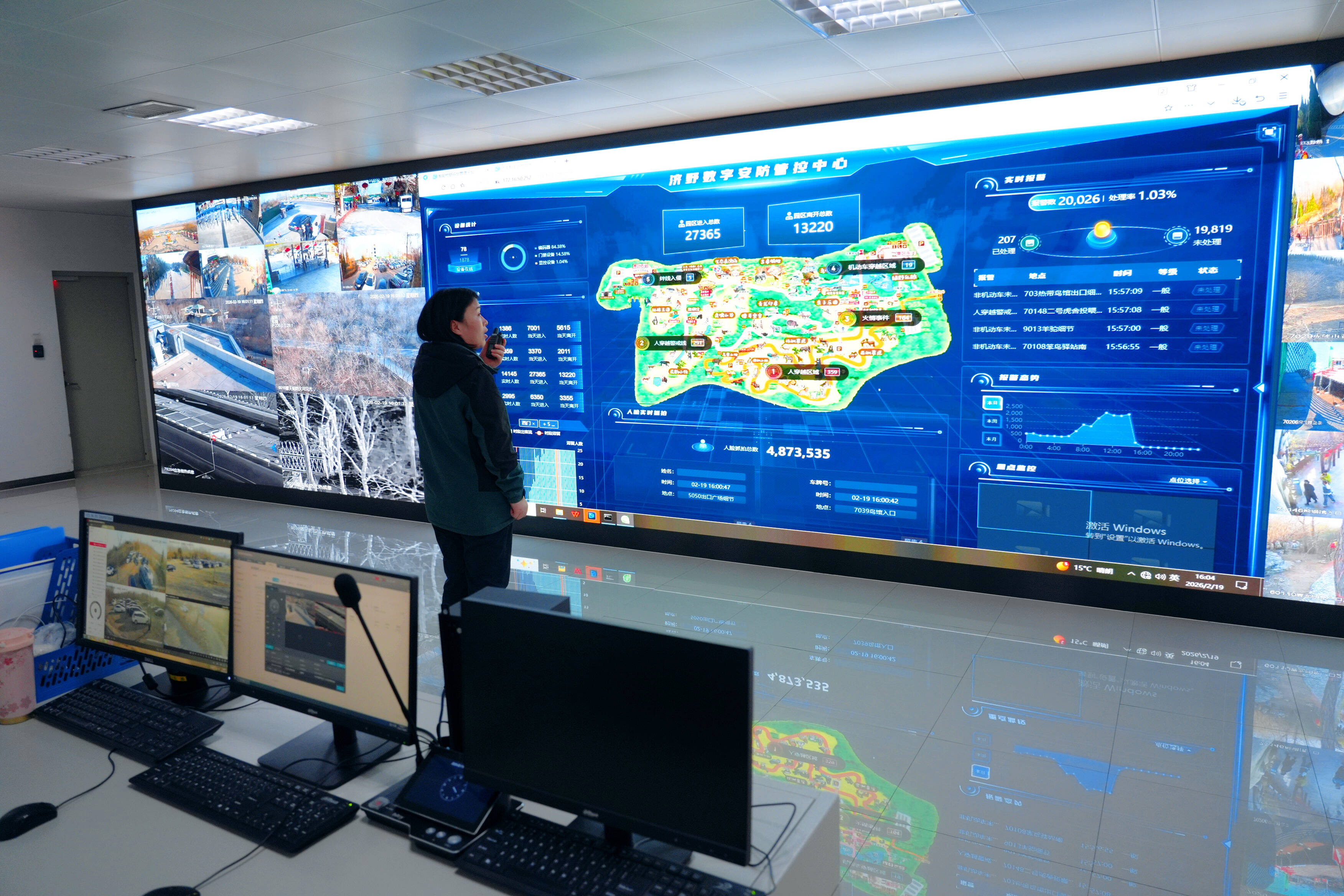 面对持续涌动的人流车流,济南野生动物世界依托“数字监控+人工巡查”双轮驱动安保体系,实现客流高峰期平稳运行。景区内近千个高清监控设备实时运转,配合AI客流预警系统,对各区域客流密度进行精准预判,为现场疏导提供有力数据支持。在重点游览区域,景区采取分段放行、单向循环等动态管控措施,确保游览秩序井然。同时,针对春节消防安全要求,景区提前组织拉网式安全生产大检查,对消防设施、游乐设备及车辆运营进行全覆盖排查,从源头上消除安全隐患,为游客筑起坚实安全防线。