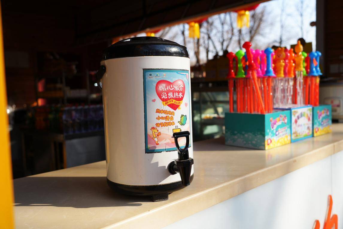 “一杯热水,不仅温暖了身体,更温暖了我们的心。” 在园内游玩的游客高先生接过工作人员递上的热水,不禁由衷点赞。景区温情服务持续“升温”,在主要游览通道设置多个免费热水供应点,确保游客随时喝上一口热水驱寒暖身。