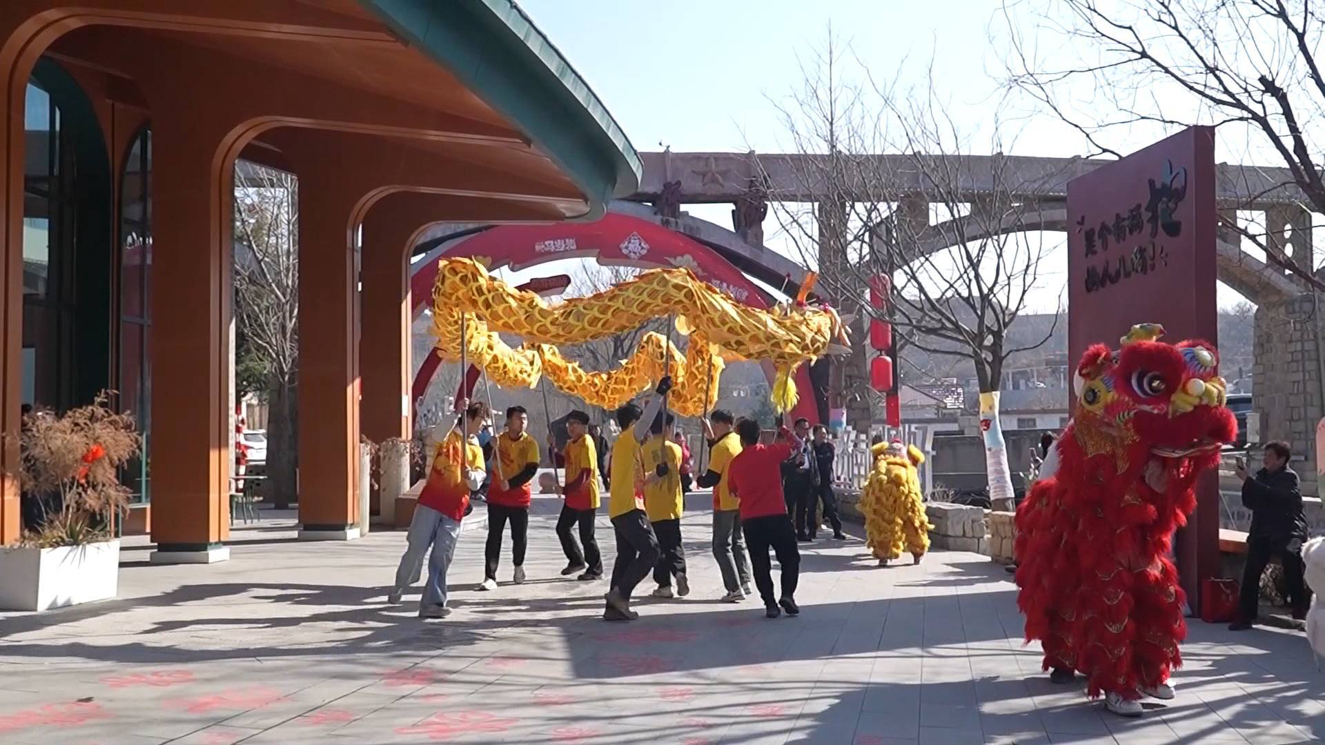 大红灯笼映乡野,龙舞欢腾贺新春。济南市莱芜区王老村,舞龙表演热闹开场,喜气洋洋。暖心羊汤、时尚咖啡茶饮同步亮相,传统民俗与现代休闲碰撞融合,成为新春热门打卡地。