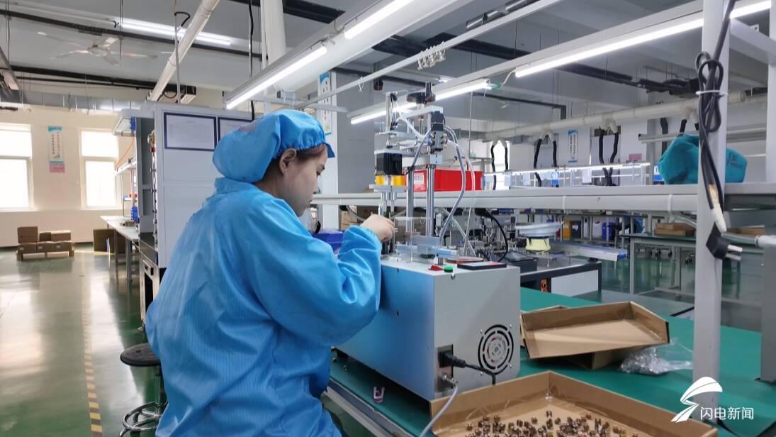 山东明亮电子有限公司同样抢抓机遇,生产车间内,员工们全力推进生产线扩建升级项目,奋力实现新年新突破。新的产线投产后,企业经营面积将增加2600平方米,生产能力提升20%,新增就业岗位20-30个,预计年营业收入可增加1000万元。