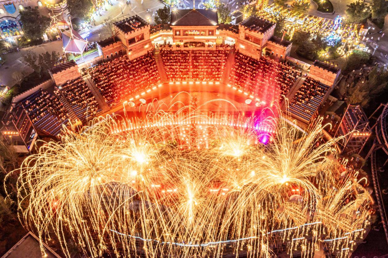 国风大秀《梦回西楼》新春特别场累计演出10余场,核心演艺备受热捧,场场座无虚席。这场大秀以宋韵文化为背景,将打铁花等非遗技艺与水幕光影、数控喷泉等现代舞美技术相结合,为观众呈现了一场文化与视觉的双重盛宴。而家庭剧场《西游大联欢》则通过即兴互动、观众参与等形式,营造出了欢乐祥和的节日氛围。