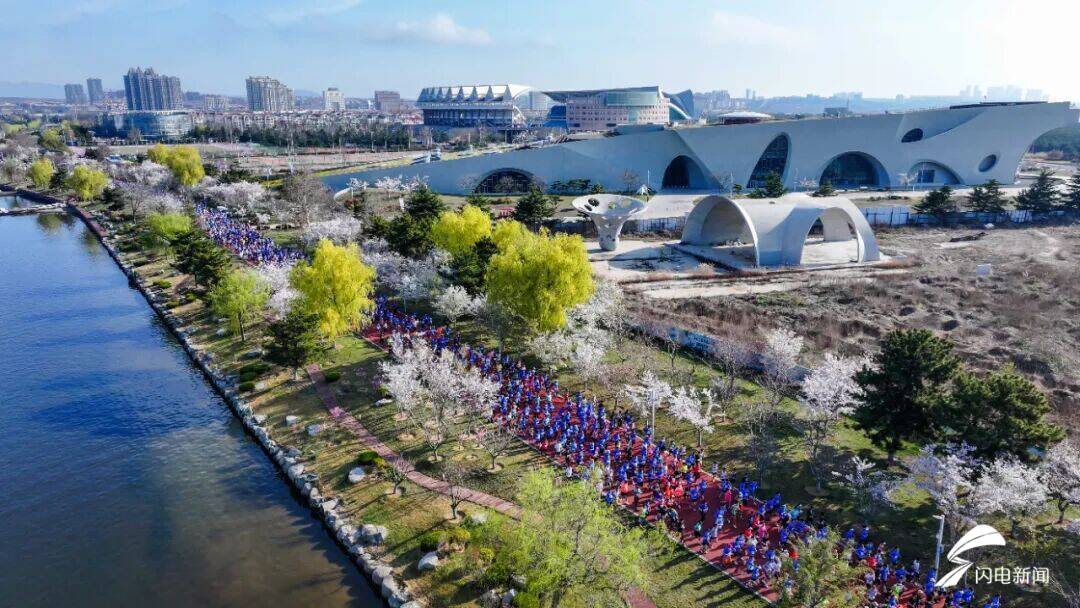 4月的荣成,樱桃花海缀满阡陌,海风裹挟花香拂面,赛道串联起樱花湖体育公园、滨海公园、成山大道等城市地标,一侧是碧波万顷的壮阔海景,另一侧是错落有致的城市风光,让每一步奔跑,都能沉浸式感受“山海相依、城景相融”的独特韵味,让运动的激情与春日的浪漫撞个满怀。