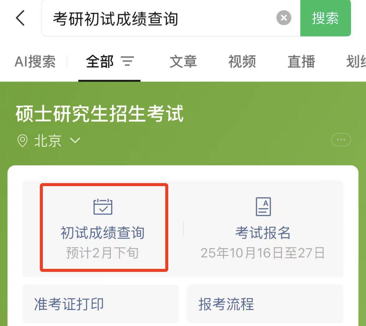 2026年全国硕士研究生招生考试初试成绩将于2月28日开通查询。