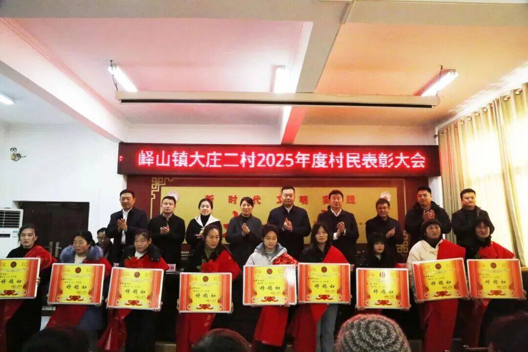 峄山镇大庄二村连续33年开展文明村民评选表彰活动,挖掘身边孝老爱亲典型,表彰先进、传递正能量,引导村民传承优良家风、弘扬传统美德,该村也被评为“第七届全国文明村”。