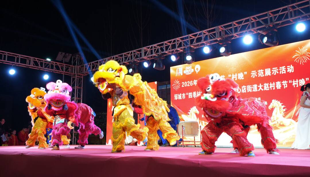 中心店街道大赵村举办第七届百姓村晚,抬花轿、阴阳板等民俗节目精彩登台,成功获评2026年度省级春节“村晚”示范展示点。