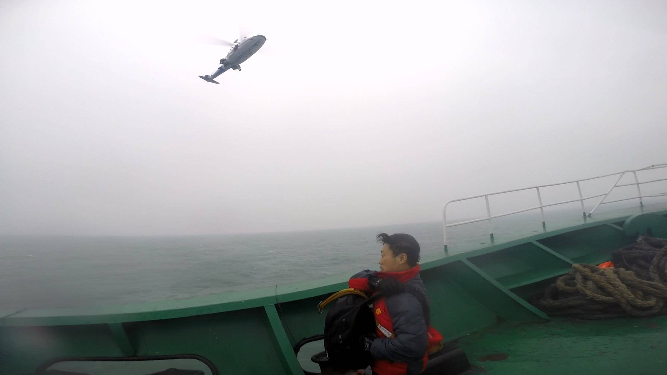 机组人员迅速展开吊运,用高绳和救援套,将筏上的6名船员吊运至机舱。随后,“B-7327”又转移至货船上空,救起另外2名遇险船员,快速返航。“北海救201”轮继续留守现场,查看难船情况。