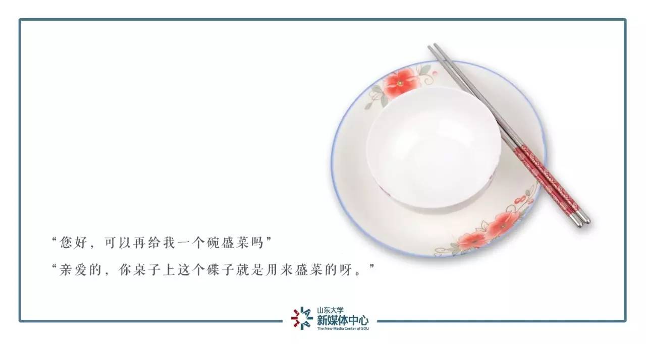 服务员:“亲爱的,你桌子上这个碟子就是用来盛菜的呀。”