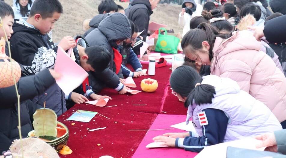 舞台之外,同学们化身小小设计师,用橘子皮、柚子皮等天然果皮变废为宝制作河灯。大家专注投入、巧思迸发,让自然之美与黄河文化在一盏盏创意河灯中温柔相遇,每一盏河灯都饱含着孩子们的用心与创意。