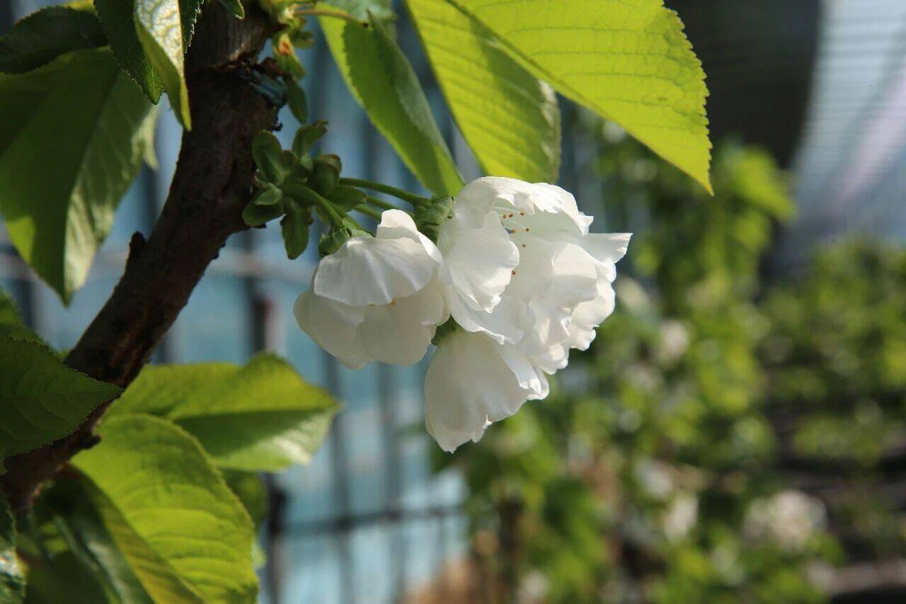 齐鲁网·闪电新闻3月4日讯 春生万物萌,春花迎春归。近日,走进威海市环翠区羊亭镇宝石山农业的樱桃大棚,满棚樱桃花竞相绽放,一团团、一簇簇缀满枝头。在嫩绿叶芽的映衬下,花朵白里透红、分外娇艳,沁人心脾的花香扑面而来,勾勒出一幅生机盎然的田园画卷。