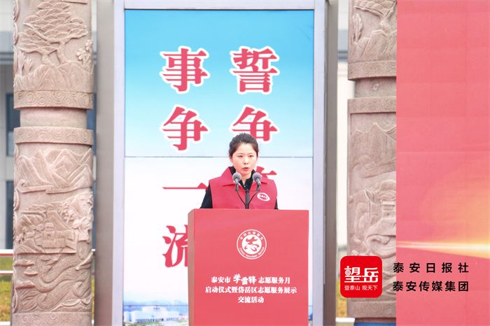 “泰山先锋”志愿者代表宣读《学雷锋 做志愿 共同奋进“十五五”志愿服务活动倡议书》,号召全市志愿者以雷锋同志为榜样,将志愿服务融入日常、化作经常。
