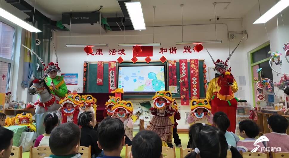 校园里威风凛凛的醒狮跃动腾挪,红金狮身随鼓点灵动翻舞,红绸装点的竹马憨态可掬,灵动的造型让孩子们忍不住围拢上前,伸手轻触、亲密互动。从校门口的沉浸式展演到教室里的文化浸润,非遗的魅力在校园处处流淌。老师们化身 “非遗使者”,手持竹马玩偶为孩子们讲述民俗故事,结合马年生肖文化解读非遗技艺的传承脉络,让孩子们在近距离接触中感受传统民俗的鲜活生命力。