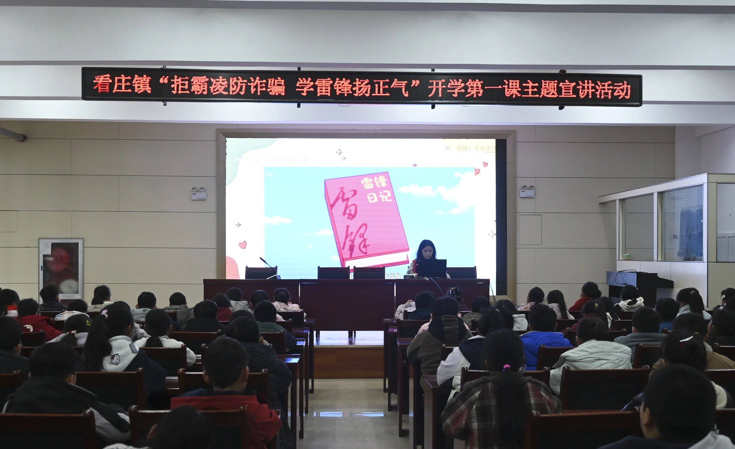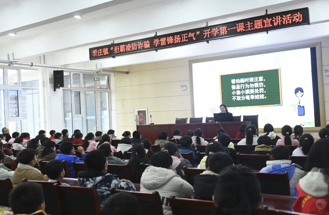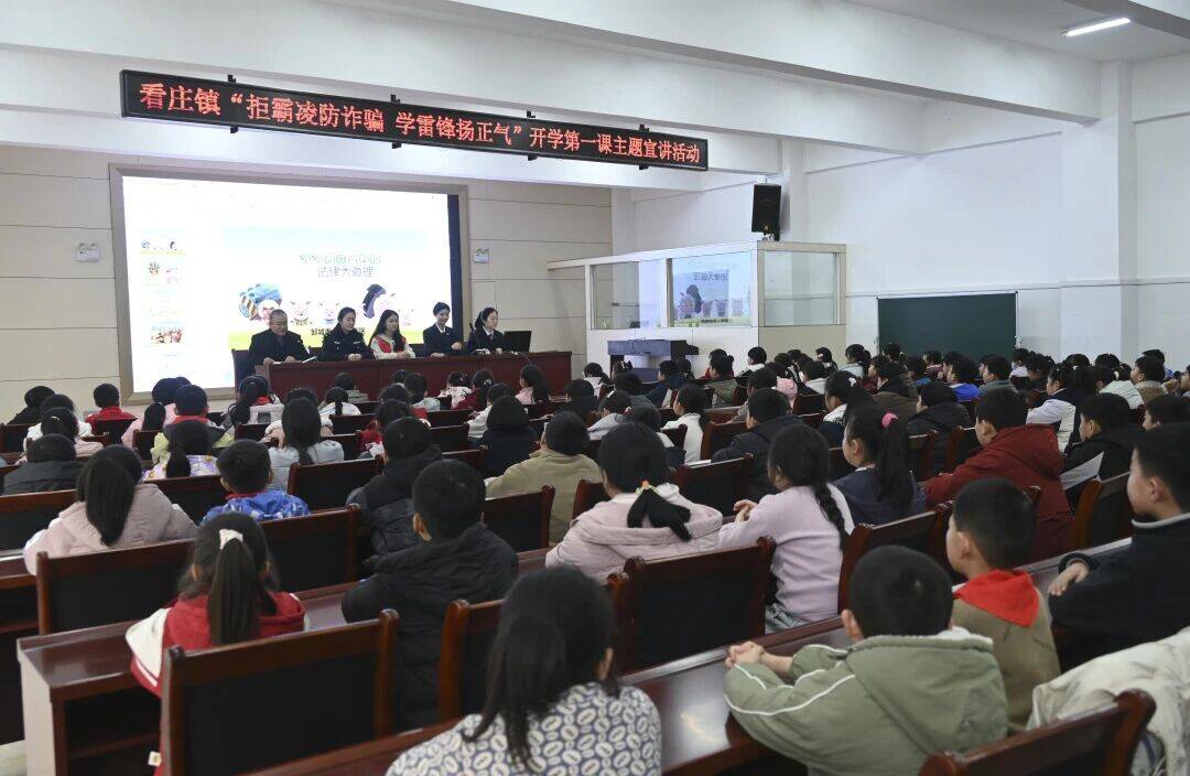 齐鲁网·闪电新闻3月5日讯 昨日,济宁市邹城市看庄镇宣传、文秘、团委、综治等部门联合市人民检察院、镇派出所,在看庄镇中心小学共同开展了2026年春季学期“开学第一课”主题活动。本次活动以“拒霸凌防诈骗 学雷锋扬正气”为主题,三、四年级140余名师生齐聚一堂,共赴一场法治与德治交融的成长之约。