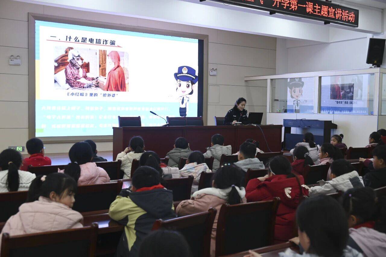 镇派出所民警则聚焦“防诈骗”主题,针对小学生常见的网络诈骗、游戏充值陷阱等进行了详细讲解。民警通过列举典型案例,揭示了诈骗分子的常用手段,并现场传授了防骗小技巧,提醒同学们不轻信陌生人、不随意点击链接、保护好个人隐私,筑牢反诈防线。