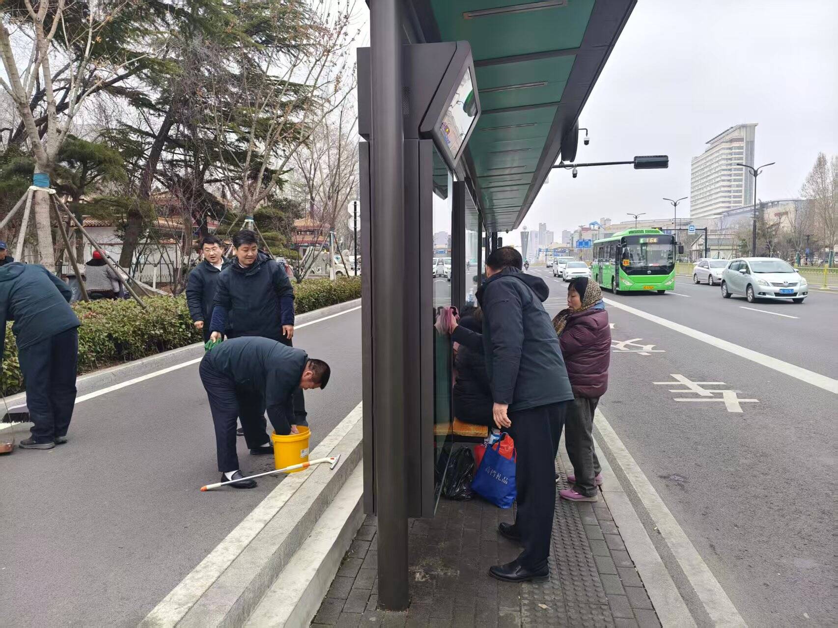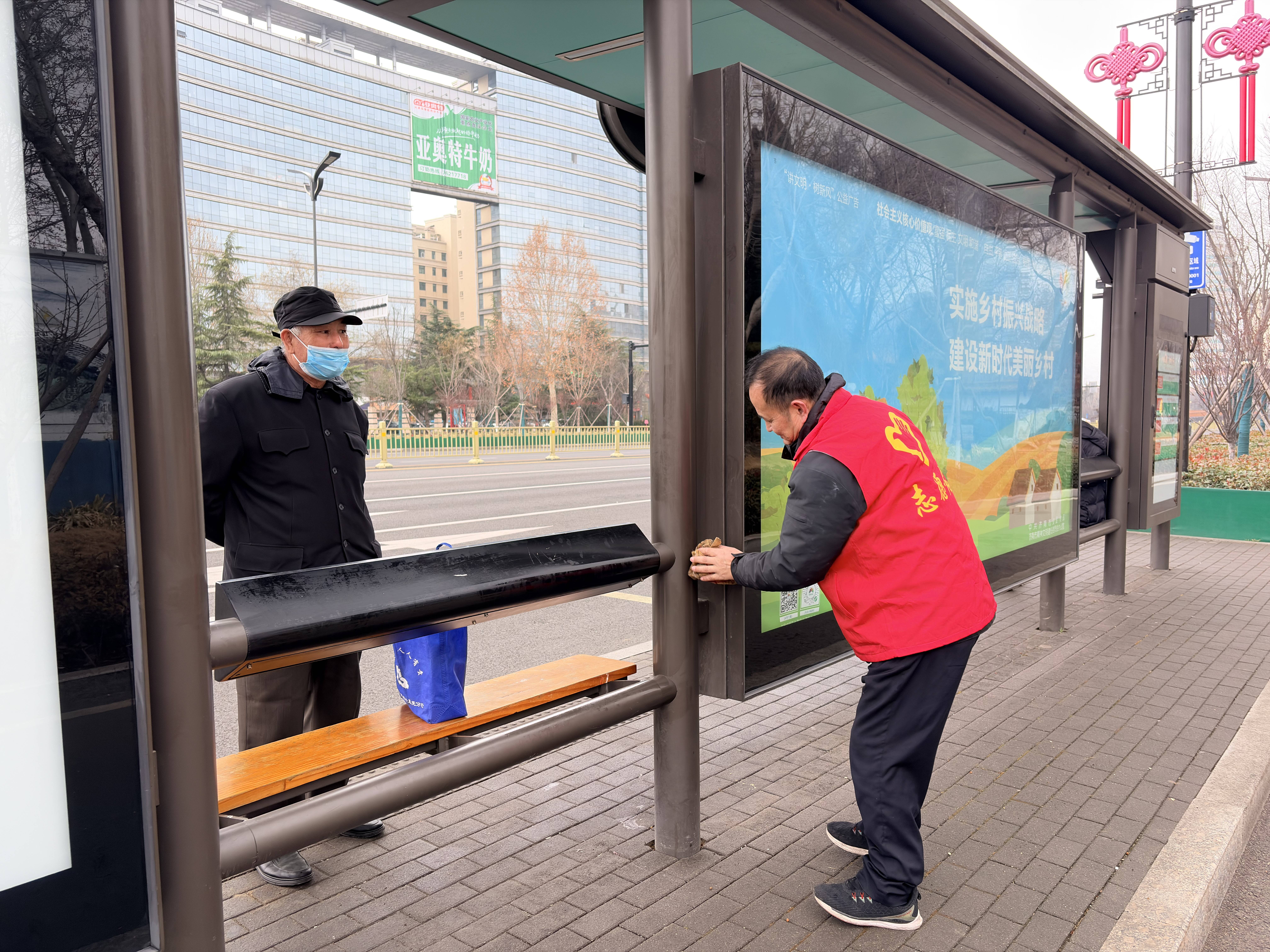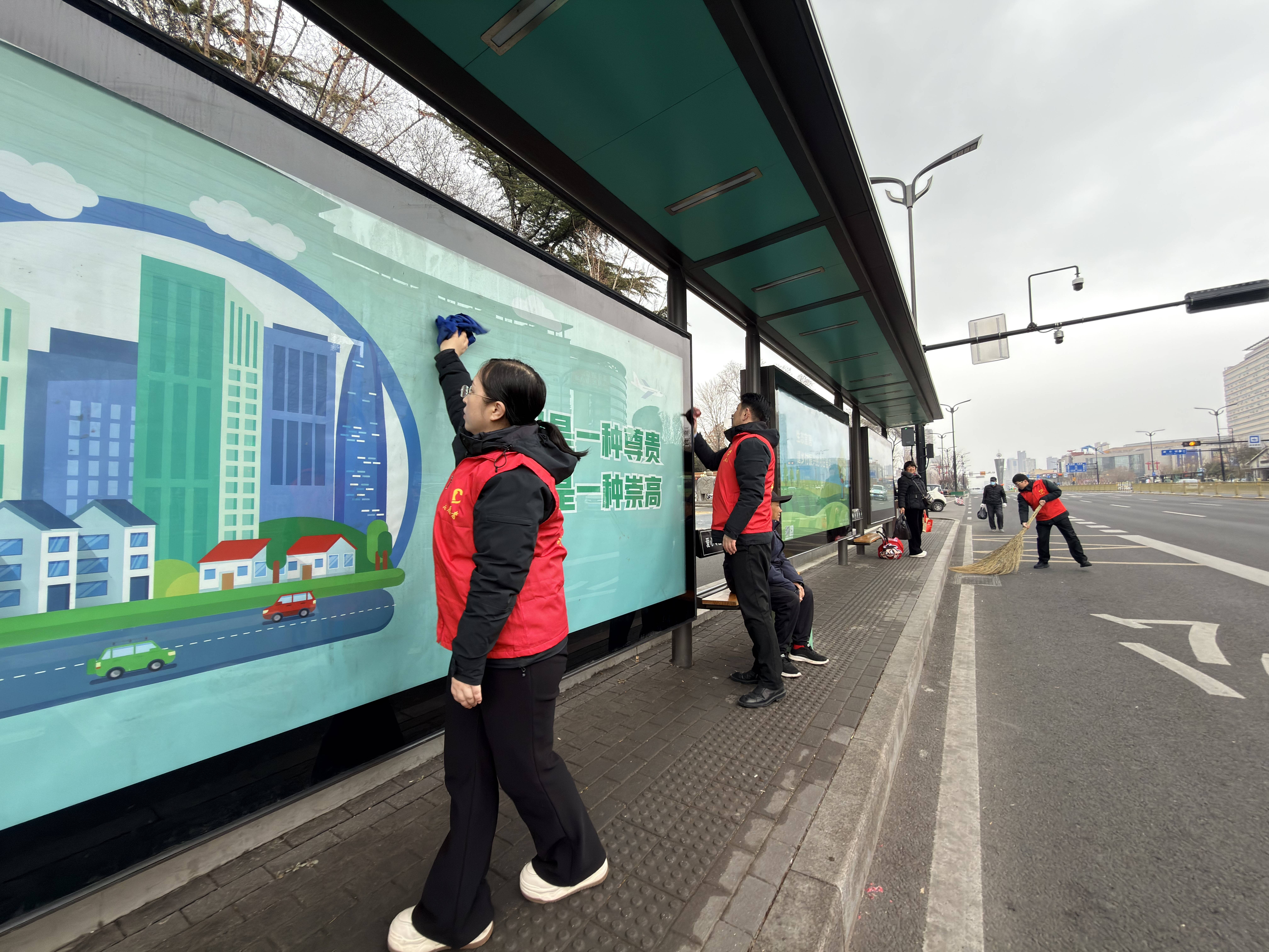 活动当天,身着红色马甲的志愿者们早早来到指定站点,精神饱满地投入服务工作。在红石公园、口镇周边站点,机关支部和运营支部的志愿者们分工协作,手持抹布、扫帚等工具,仔细擦拭候车亭与座椅,清扫地面垃圾,不放过任何卫生死角,全力为乘客营造干净整洁的候车环境。与此同时,耐心解答乘客关于线路换乘等问题,积极引导市民有序排队候车、文明礼让,维护站台乘车秩序,贴心的服务赢得过往市民的纷纷点赞。