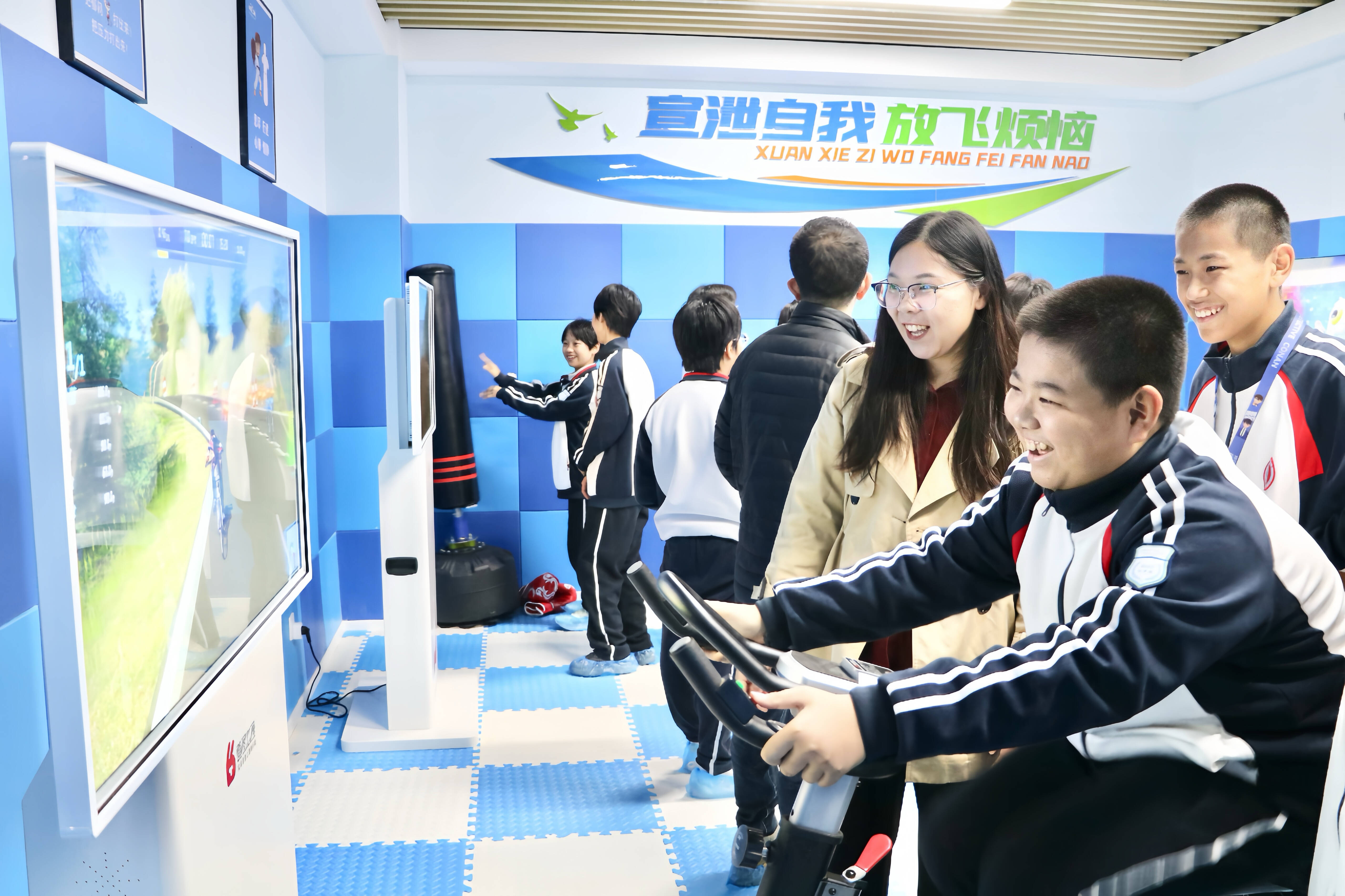 在济南高新区实验中学,占地一千一百平方米的学生发展指导中心始终向学生敞开。中心设有读书角、安心小屋、心理情绪宣泄室、VR虚拟现实训练室、沉浸式放松室、心理能量馆、心理咨询室、心理测量评估室等18个功能空间,从个体倾诉到团体活动,从情绪宣泄到沉浸放松,既是“困惑时的避风港”,也是“成长中的加油站”。