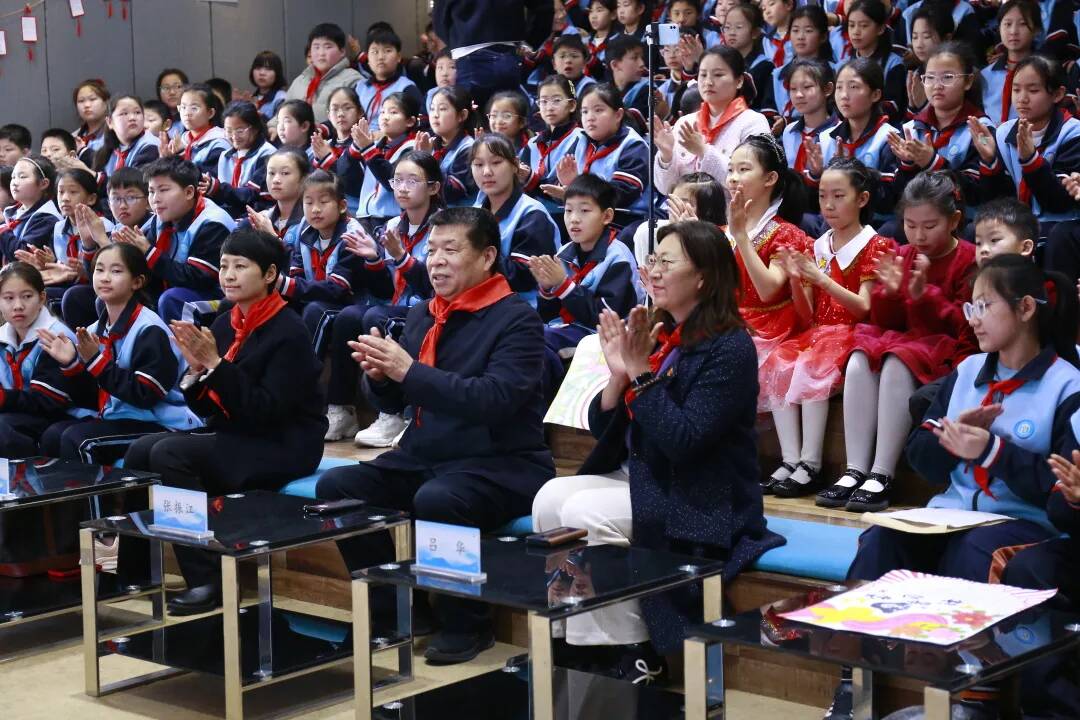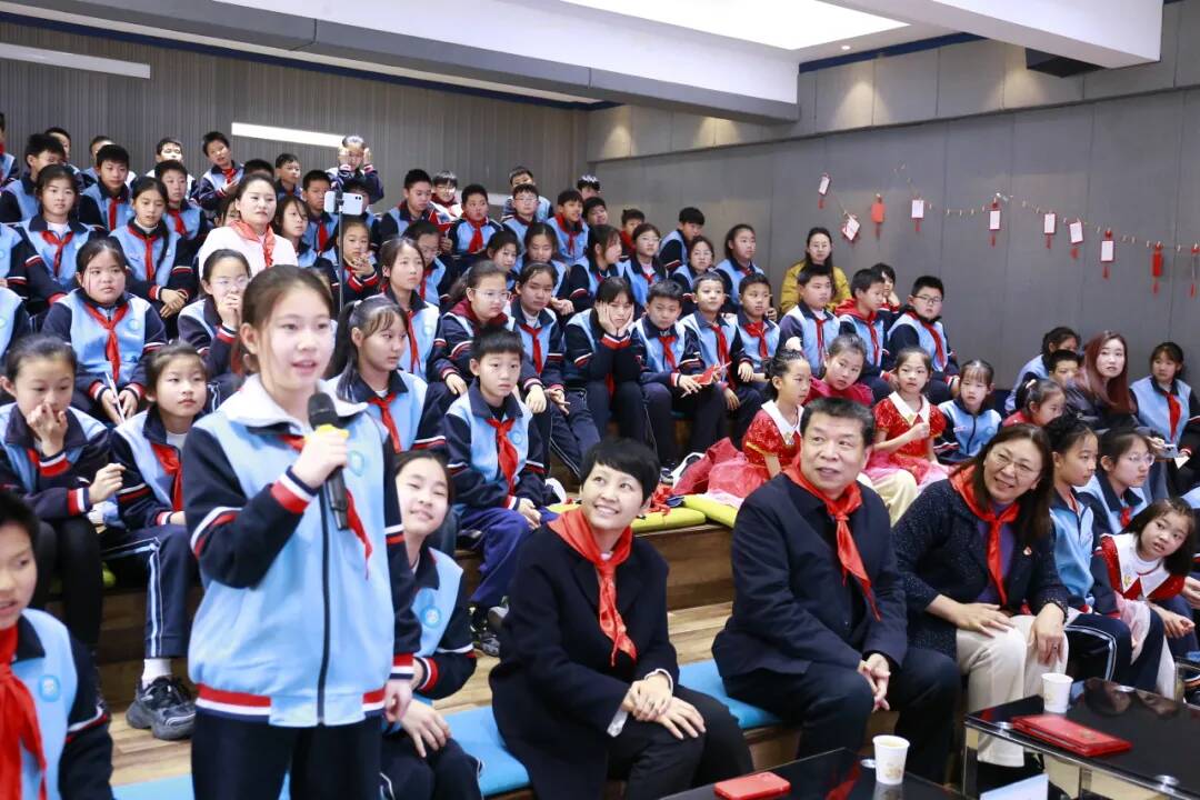 爱都小学小剧场活动现场暖意融融,张振江是《雷锋》杂志社副总编、原济南军区宣传部部长,全国新闻出版行业领军人才,多年来深耕红色宣讲与雷锋精神传播,用行动让榜样力量浸润人心。