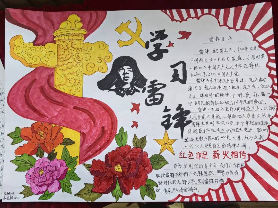 为了深入学习雷锋精神,传承无私奉献、助人为乐、爱岗敬业的优良品质,学校开展了丰富的主题实践活动。各中队召开主题班队会,树立学生正确价值观,争做有责任、有担当、有道德的新时代公民。孩子们用文字、画笔、行动,书写对雷锋叔叔的敬意。