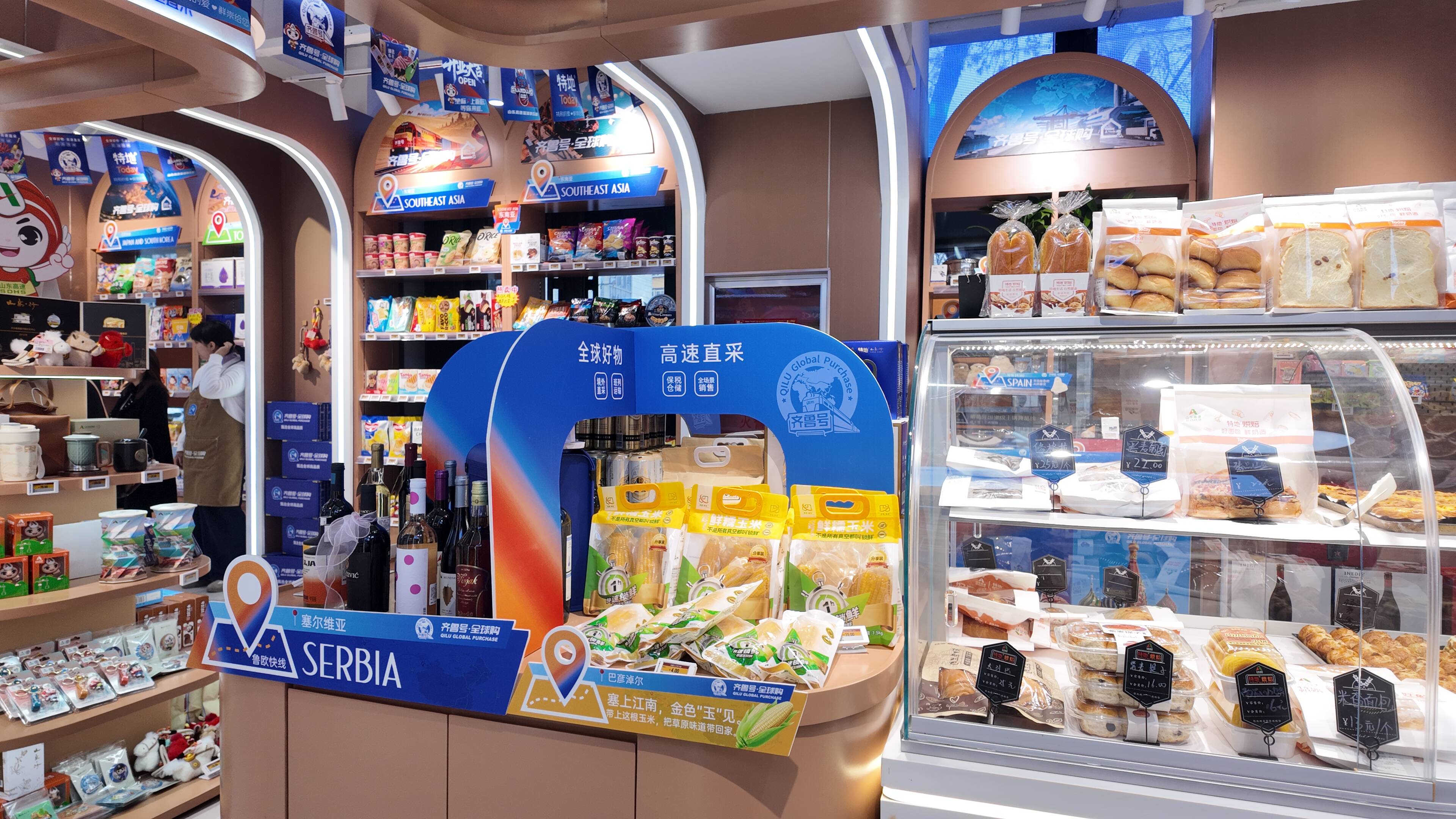 “齐鲁号·全球购”上新街店位于上新街北首,依托“境外直采+班列运输+保税仓储+全场景销售”的供应链优势,汇聚了全球优质商品,涵盖欧洲酒水、俄罗斯生鲜及塞尔维亚特色好物,品质可溯、品类丰富。作为首家山东高速篮球俱乐部官方特许商品零售店,门店集中展示山高男篮品牌文化,提供男篮文创产品购物及打卡体验。为满足广大消费者需求,门店创新推出“24小时无人值守”运营模式,白天提供现制烘焙、鲜奶糕点等便民服务,夜间持续开放全球好物自助选购,满足市民全天候、多元化的消费需求,真正实现“全时点亮、随时可购”。