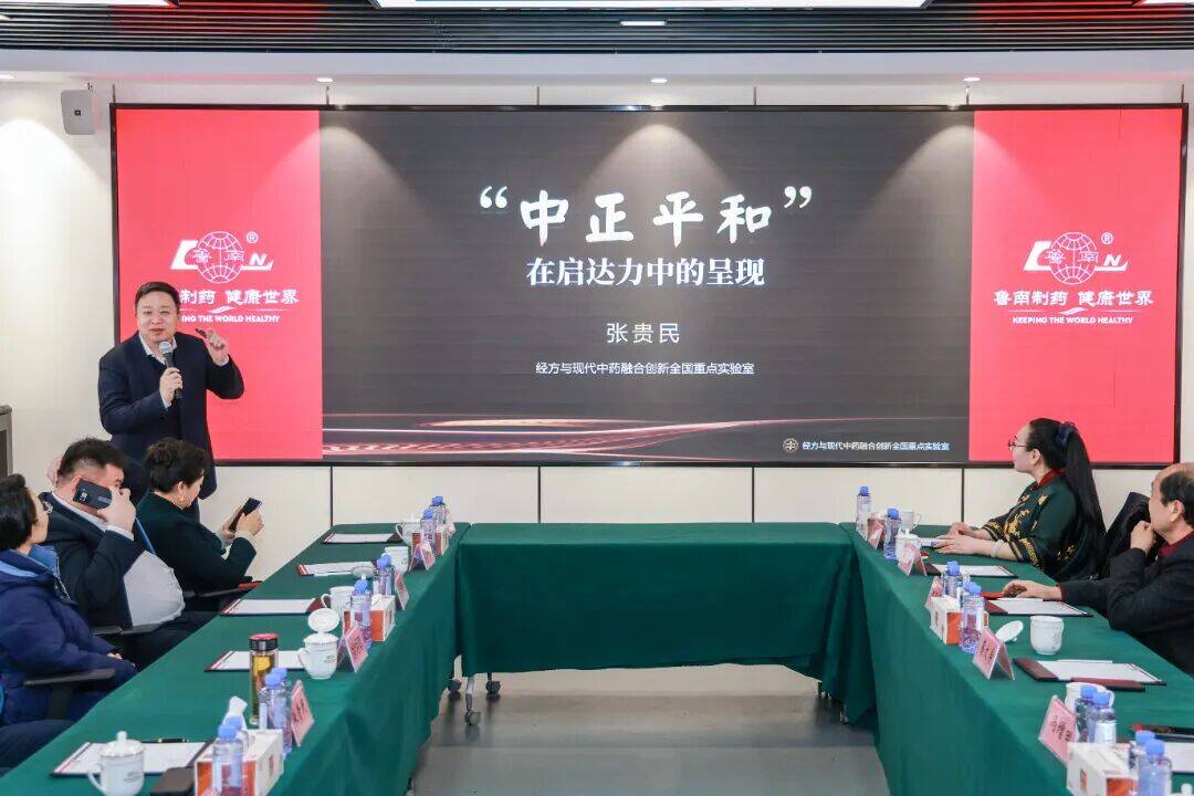 张贵民以《“中正平和”在启达力中的呈现》为题,作了一场别开生面的健康养生专题讲座。他从传统文化视角和中医药智慧出发,以“中正平和”理念在启达力®产品中的呈现为依托,将优秀传统文化、现代中药研究和人体身心健康相融合,展现了鲁南制药以文化赋能健康、以科技服务民生的成果转化和时代使命。张贵民表示,鲁南制药将继续依托沂蒙红色沃土,以科技创新和文化赋能,为人民健康与民族医药事业贡献更多“鲁南制药方案”。