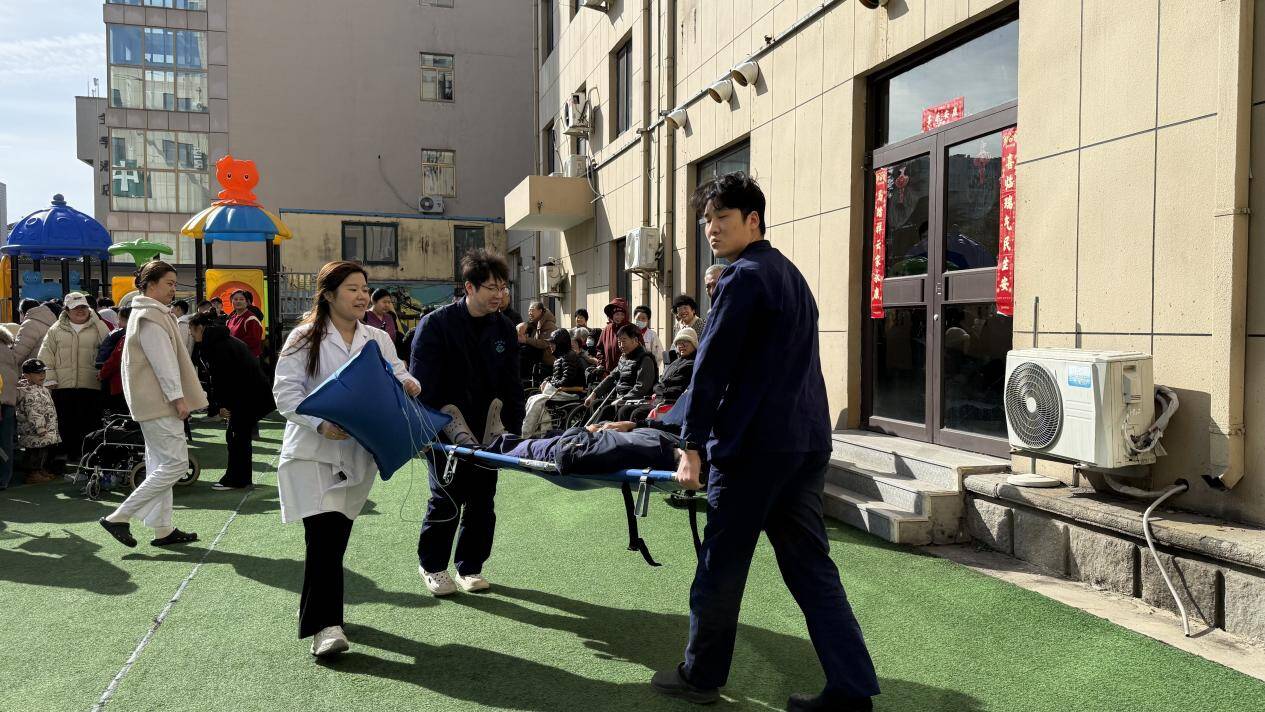 演练现场规范有序,医护人员与消防救援人员高效配合,顺利完成火情处置、人员疏散、高空救援等科目,全面检验应急预案的实用性与可操作性。