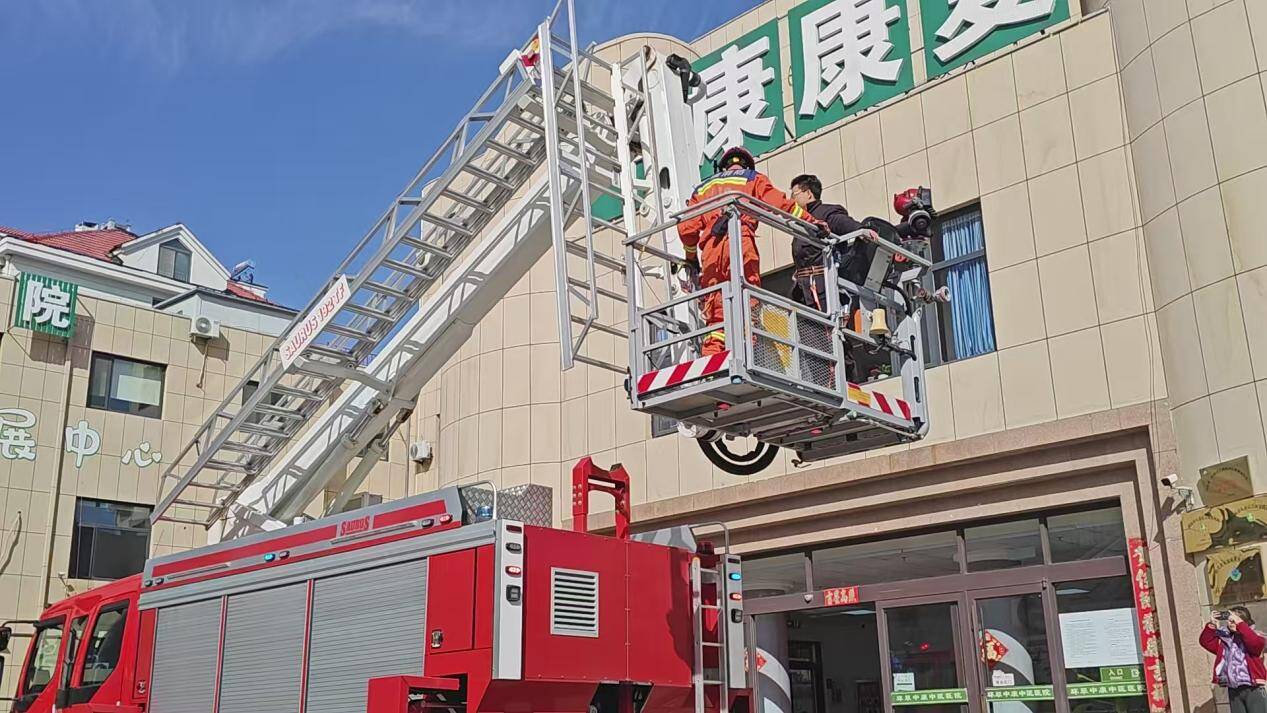 齐鲁网·闪电新闻3月11日讯 为切实筑牢医疗机构消防安全防线,提升应急处置能力,近日,威海市中康中医医院联合青岛路消防站开展消防应急演练与高空救援实战演练。威海市环翠区卫健委领导亲临现场指导工作,周边民营商户代表到场观摩学习。