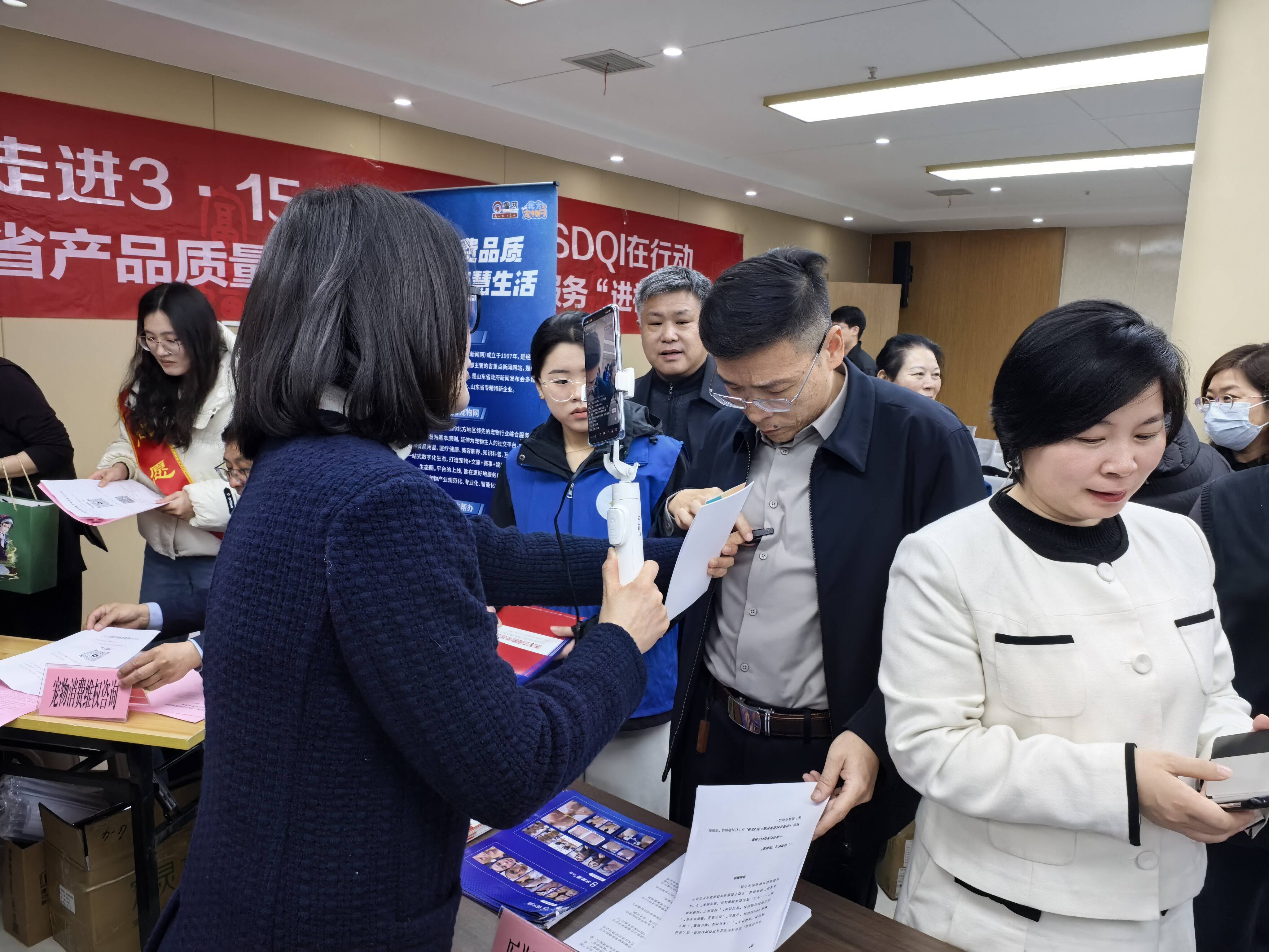 活动现场还设置了多个特色互动展区,为居民提供“零距离”的消费知识科普服务。在产品质量安全区,省产品质量检验研究院工作人员向居民宣传缺陷产品召回政策法规,细致讲解低糖食品选购要点,并现场提供小家电等实物检测服务。在纺织品鉴别区,省纤维质量监测中心专家通过实物对比和现场演示,手把手教授居民辨别真假羊毛羊绒、蚕丝被等纺织品,实用方法引得围观群众频频点头。在化妆品科普区,省化妆品行业协会、省民营整形美容协会分别发放宣传资料,组织会员单位展示优质产品,现场讲解面膜等常用化妆品的真假鉴定技巧与医美消费知识,耐心解答居民日常护肤中的疑问。宠物消费教育专区同样吸引了不少养宠居民。北方宠物网聚焦宠物消费热点,发放宠物消费教育指南和调查问卷,并邀请执业兽医现场坐诊,提供科学养宠与健康咨询服务。同时受理宠物消费维权咨询,针对如何避免“星期宠”陷阱给出了专业防范建议。在健康义诊区,山东新中鲁中医医院专家团队为居民提供免费中医诊疗和健康咨询服务,受到社区居民的广泛好评。