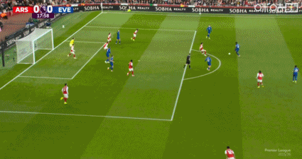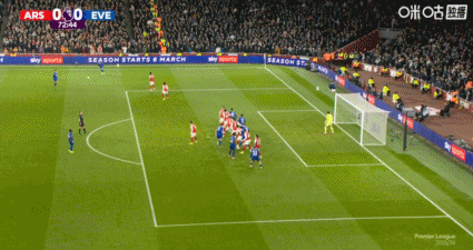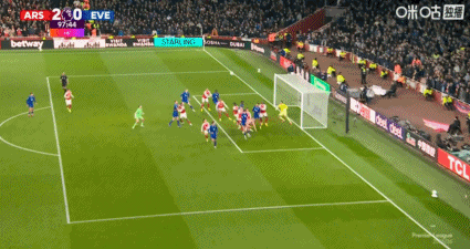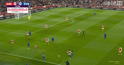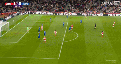 第89分钟,道曼前场右路高空球斜传到禁区内,皮克福德出击没能将球解围,球被因卡皮耶挡到门前,约克雷斯推射空门得手,阿森纳1-0领先!↓