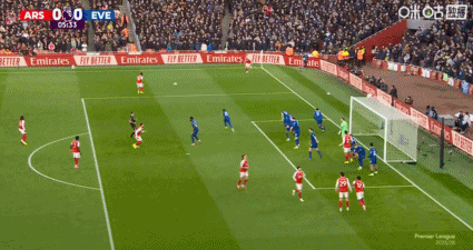 第73分钟,埃弗顿开出前场左路任意球到禁区内,迈克尔·基恩前点甩头攻门,球稍稍偏出立柱!↓