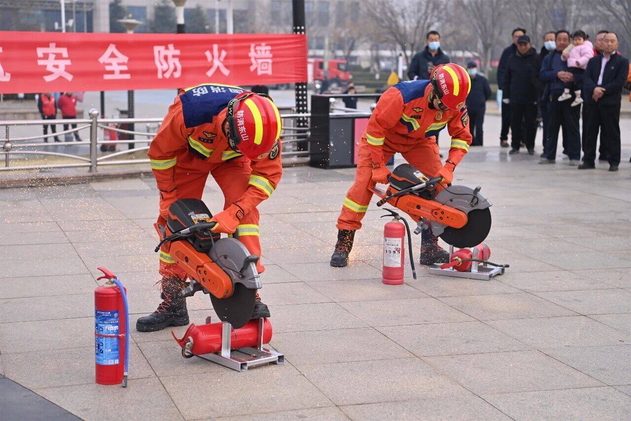 集中销毁现场“打假”。在假冒伪劣产品集中销毁点,消防救援人员利用消防无齿锯、液压剪切钳等工具对灭火器、过滤式自救呼吸器、疏散指示标志、消防水带、消防应急照明灯具等不合格产品进行了集中销毁,进一步杜绝了不合格消防产品流入市场,有效震慑了违法行为,净化了消防产品市场环境。