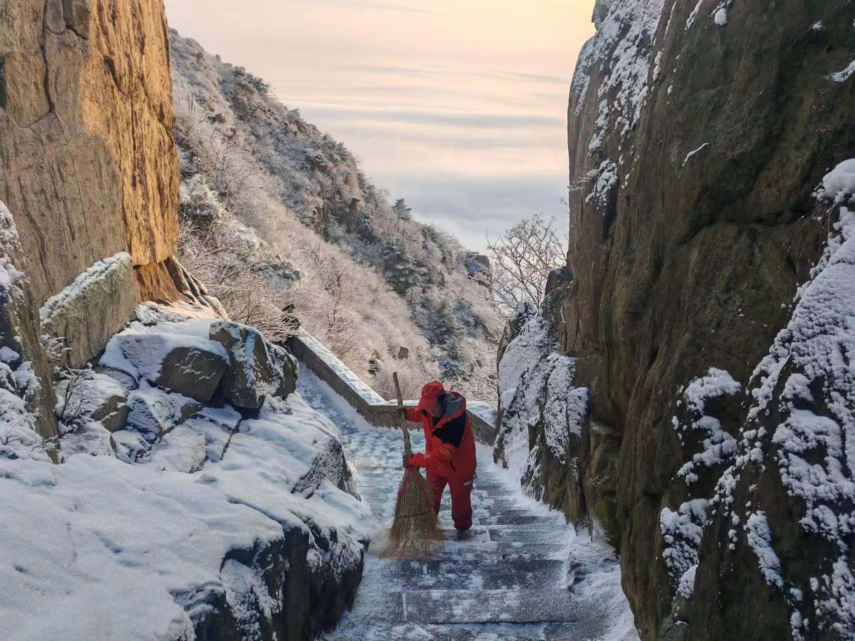 3月15日,春雪初霁,泰山之巅银装素裹,云海翻腾,宛如仙境。