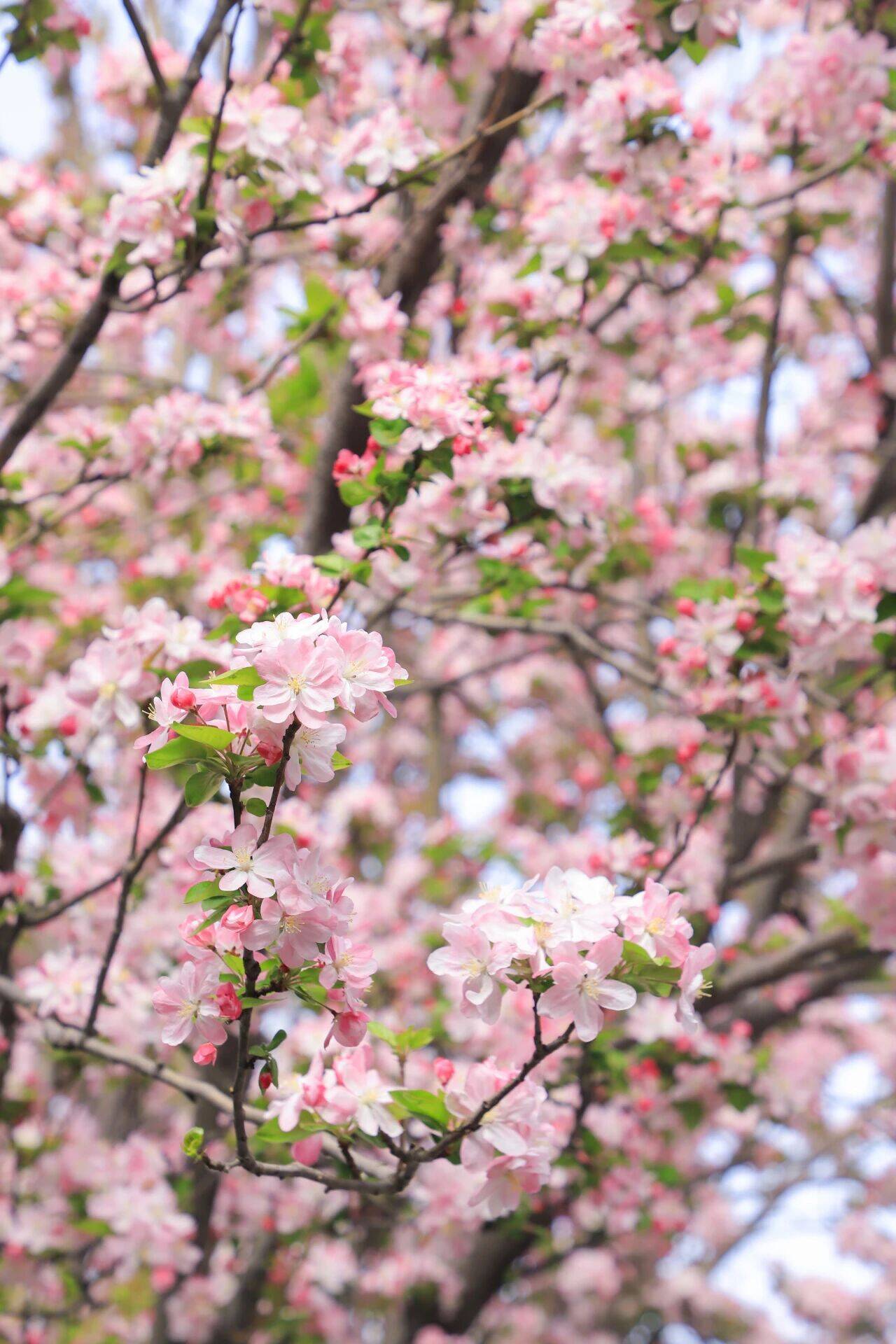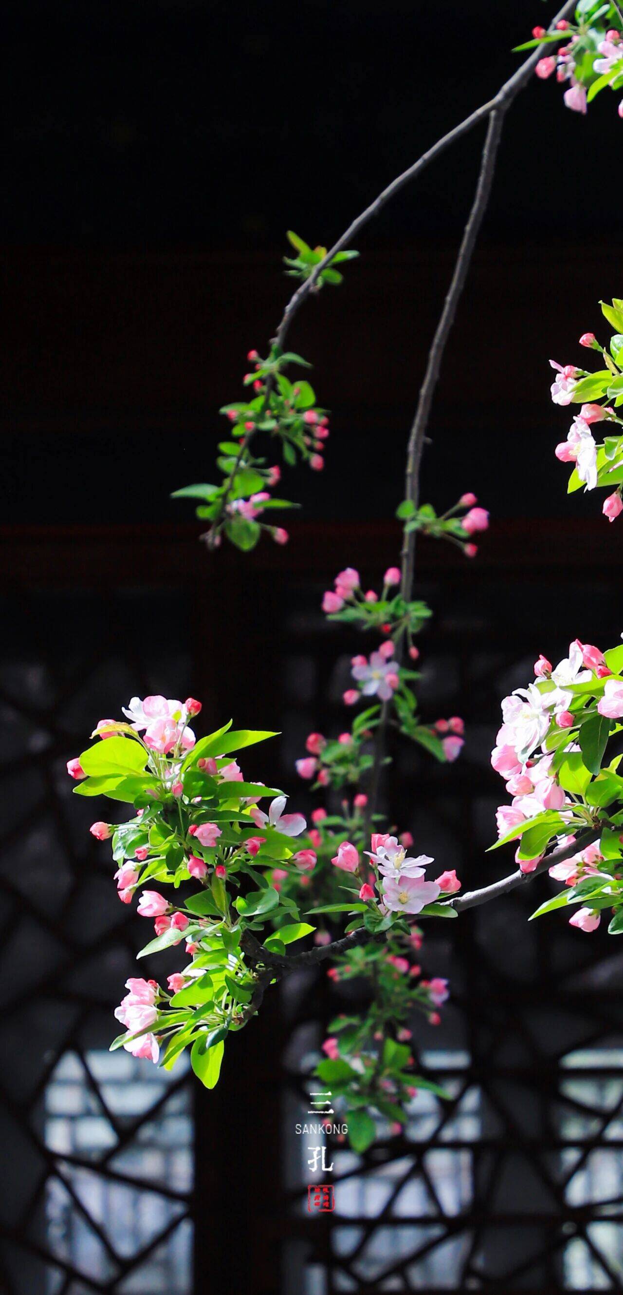 堂前海棠,花开满院。古韵悠悠中,一树繁花如诗礼传家,层层绽放。花影婆娑处,似与千年的儒风相映生辉。