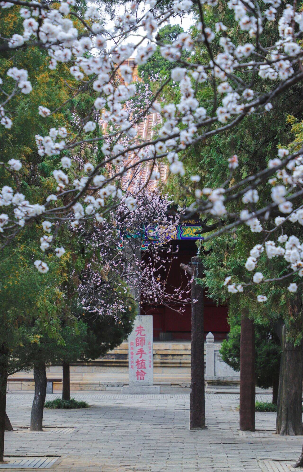 灼灼杏花绽满杏坛,花瓣纷扬如雪,落在“万世师表”的匾额上,亦落在游人的肩头。这里的杏花,大概是听了一代又一代的《论语》,开出了一身的书卷气。