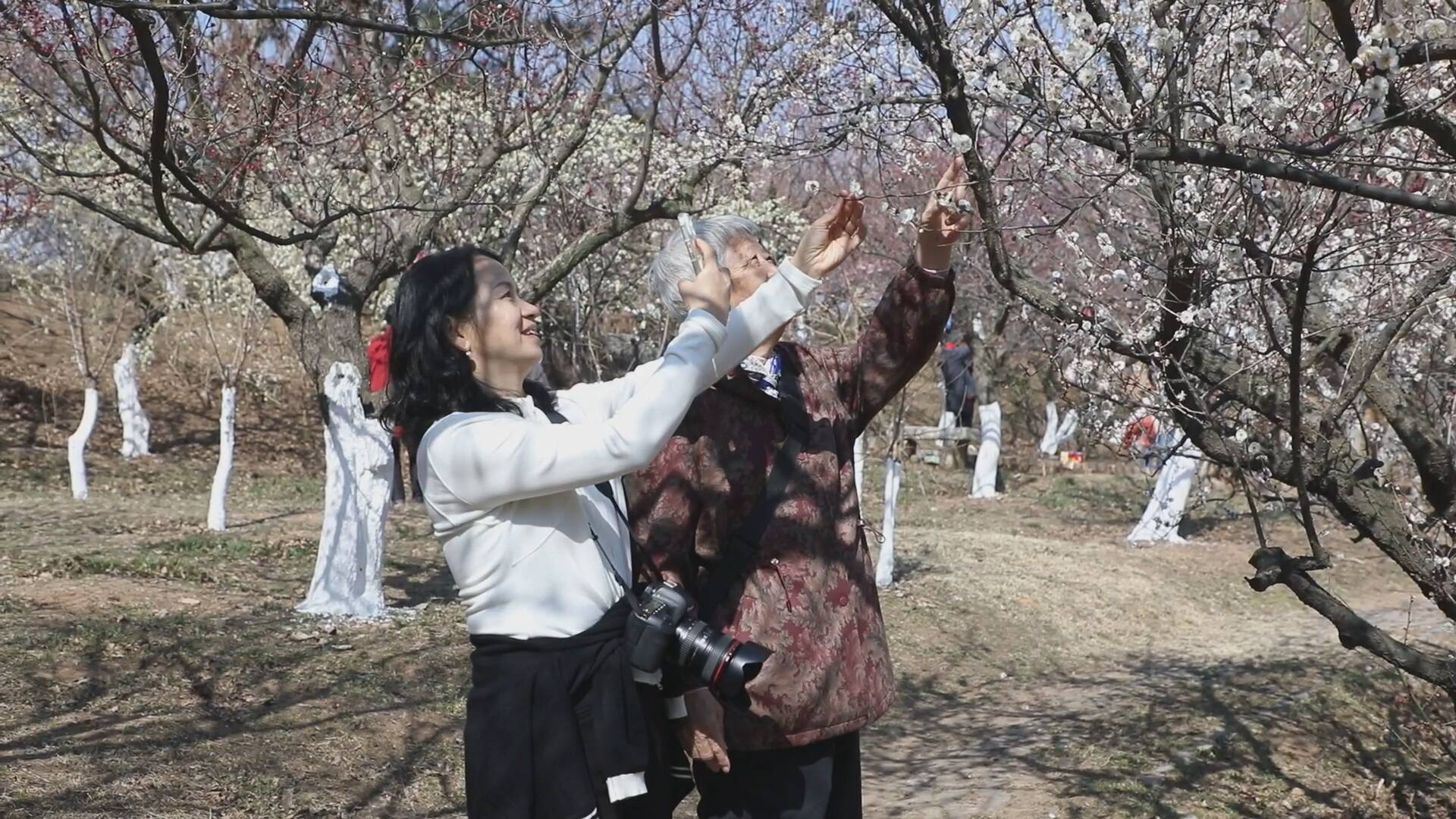 游客吴江群说:“今天天气真好,带我婆婆到梅园来观赏梅花,我们去年也来过。带老人来放松放松心情,看到梅花心情特别好。梅园来过很多次了,感觉今年的梅花开得特别密,春暖花开建议大家都来这里赏花。”