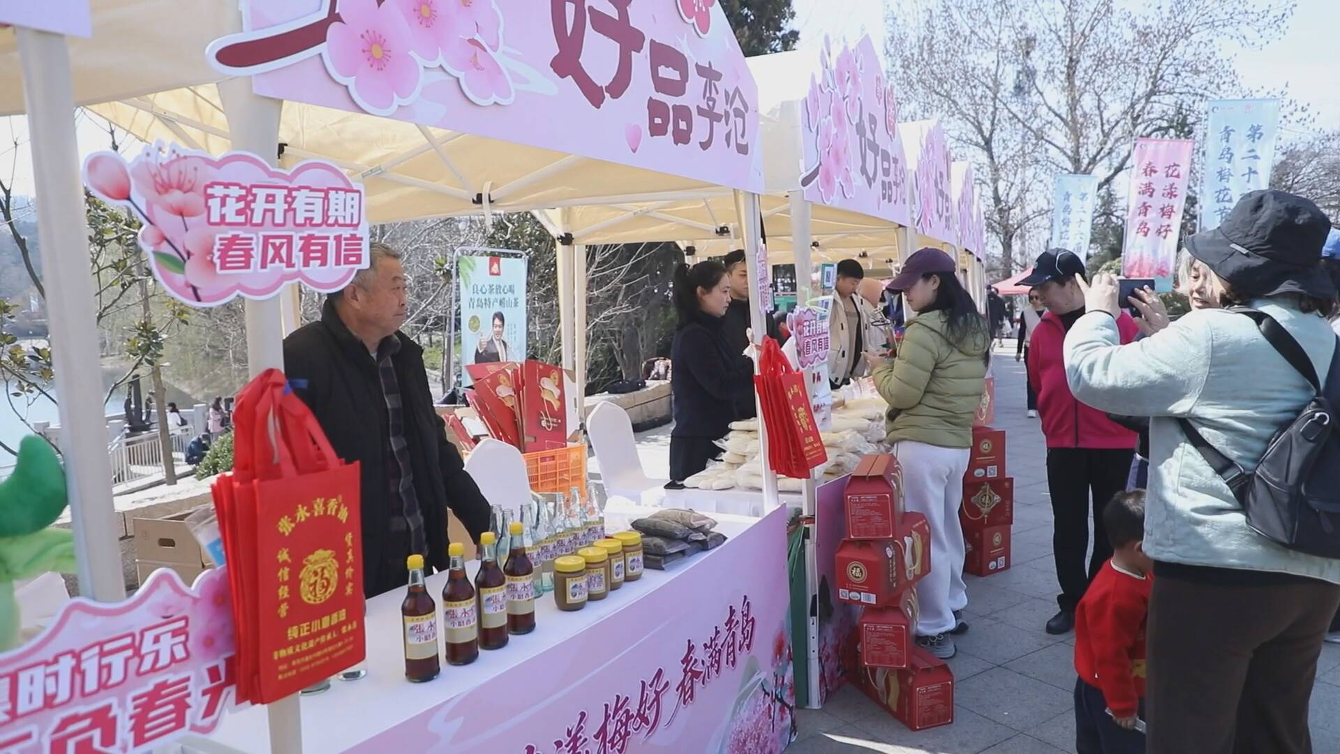 从“踏青赏花”到“沉浸式赶集”,不仅是场景转换,更是文旅产业链的延伸。来自青岛各区市的非遗代表性项目和特色产品齐聚一堂,让游客在赏花之余,零距离感受青岛文化的厚度。