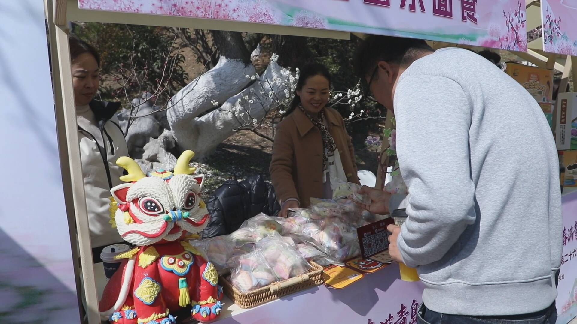 游客范中伟说:“我今天过来赏花,赏花过程中看到这个非遗集市,领了这样一个花样馒头,以前从来没见过,非常好。既能赏花又能感受非遗,感觉特别好。”