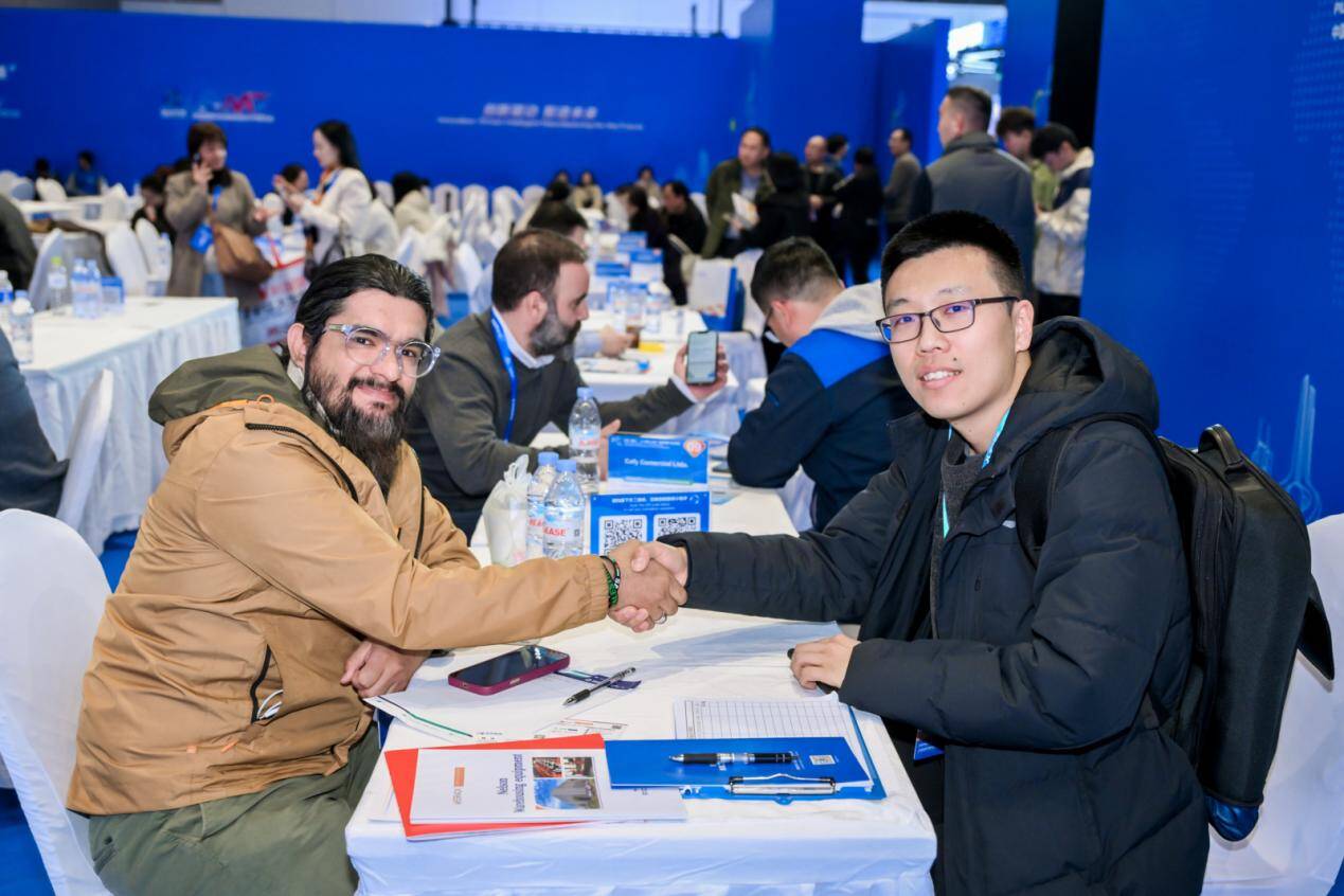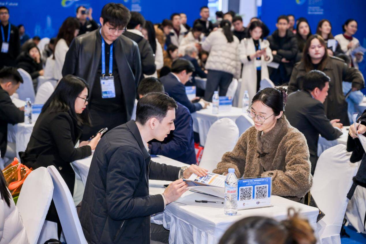 下午,作为本次对接会的压轴环节——供需对接会在会展中心对接区举行。来自德国、英国、阿联酋、越南等10余个国家的54家专业采购商与100余家本地企业进行了200余场次“一对一”对接洽谈,精准对接产业链上下游资源,链接潜在合作伙伴,研讨合作机遇、共绘发展蓝图。
