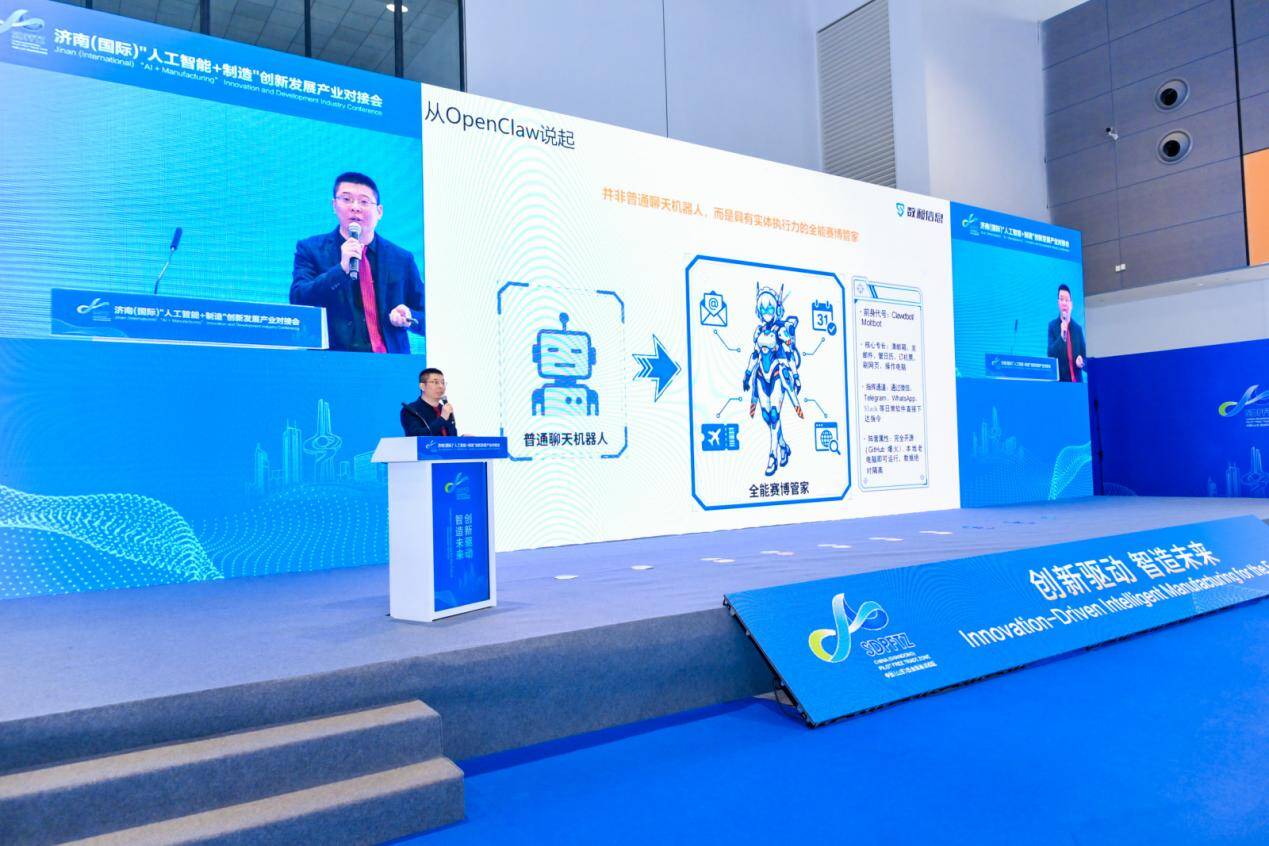 此次对接会邀请院士专家分享顶尖的科研洞察与技术成果,行业龙头企业交流“AI+制造”融合发展的实践经验。中国科学院院士、俄罗斯科学院外籍院士、美国国家工程院外籍院士黄维,山东大学人工智能学院院长成秀珍,浪潮云洲工业互联网有限公司董事长齐光鹏,山大华天首席科学家梅敬成,中国电信首席专家张云飞等众多嘉宾的精彩分享,为济南制造业的数智化转型提供了极具价值的理论指引和实践路径。