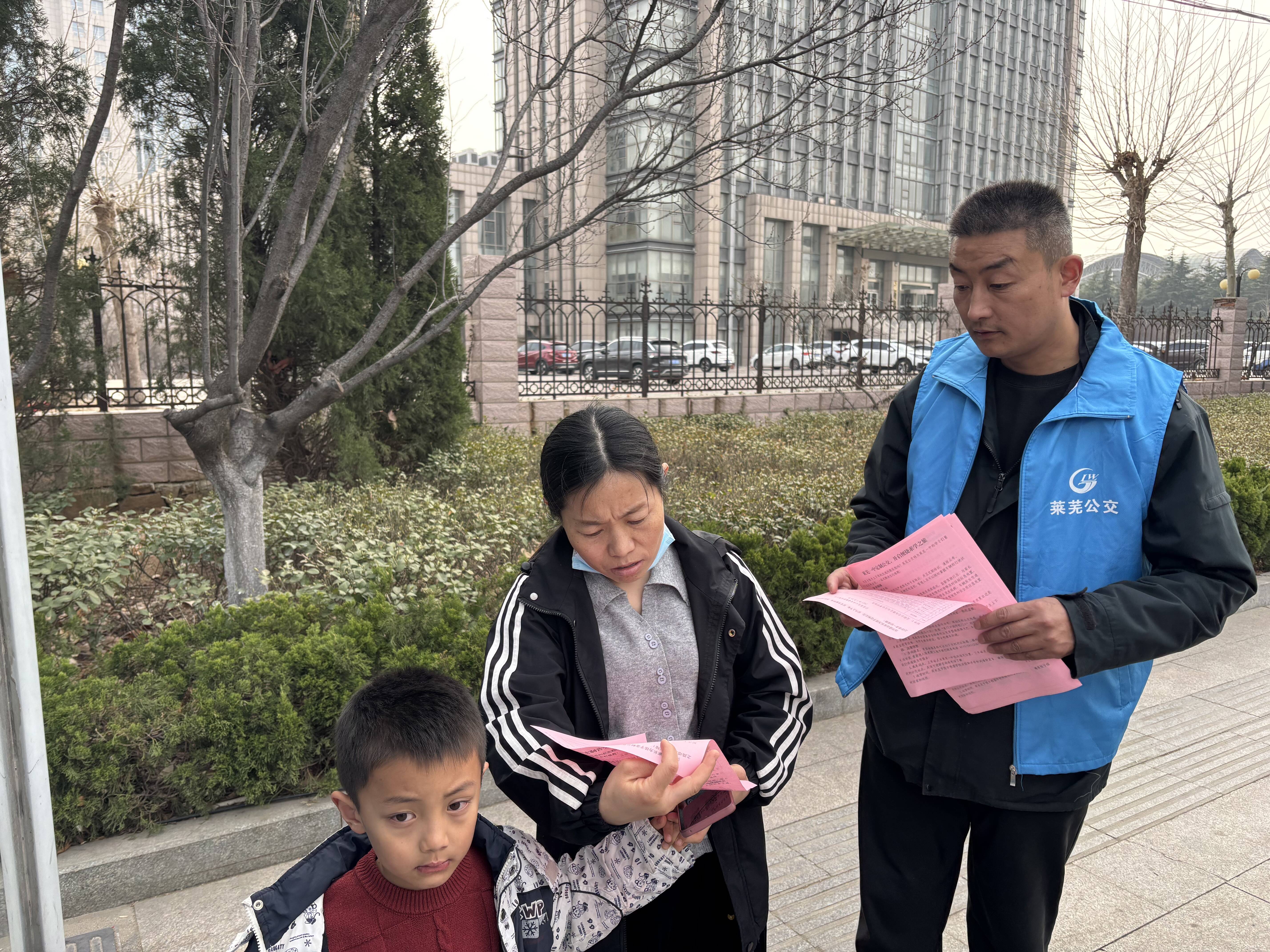 “您好,莱芜一中定制公交,您可以了解一下。”活动现场,工作人员热情地向过往的师生及家长发放宣传单页,并提供公交线路咨询、便民政策解答等一站式服务。针对家长们最为关心的安全问题,工作人员详细介绍了定制公交“从家门到校门”的一站式直达优势,以及车辆每日清洁、驾驶员严格培训等安全保障措施,致力于将定制公交打造成连接家校的“暖心直通车”。