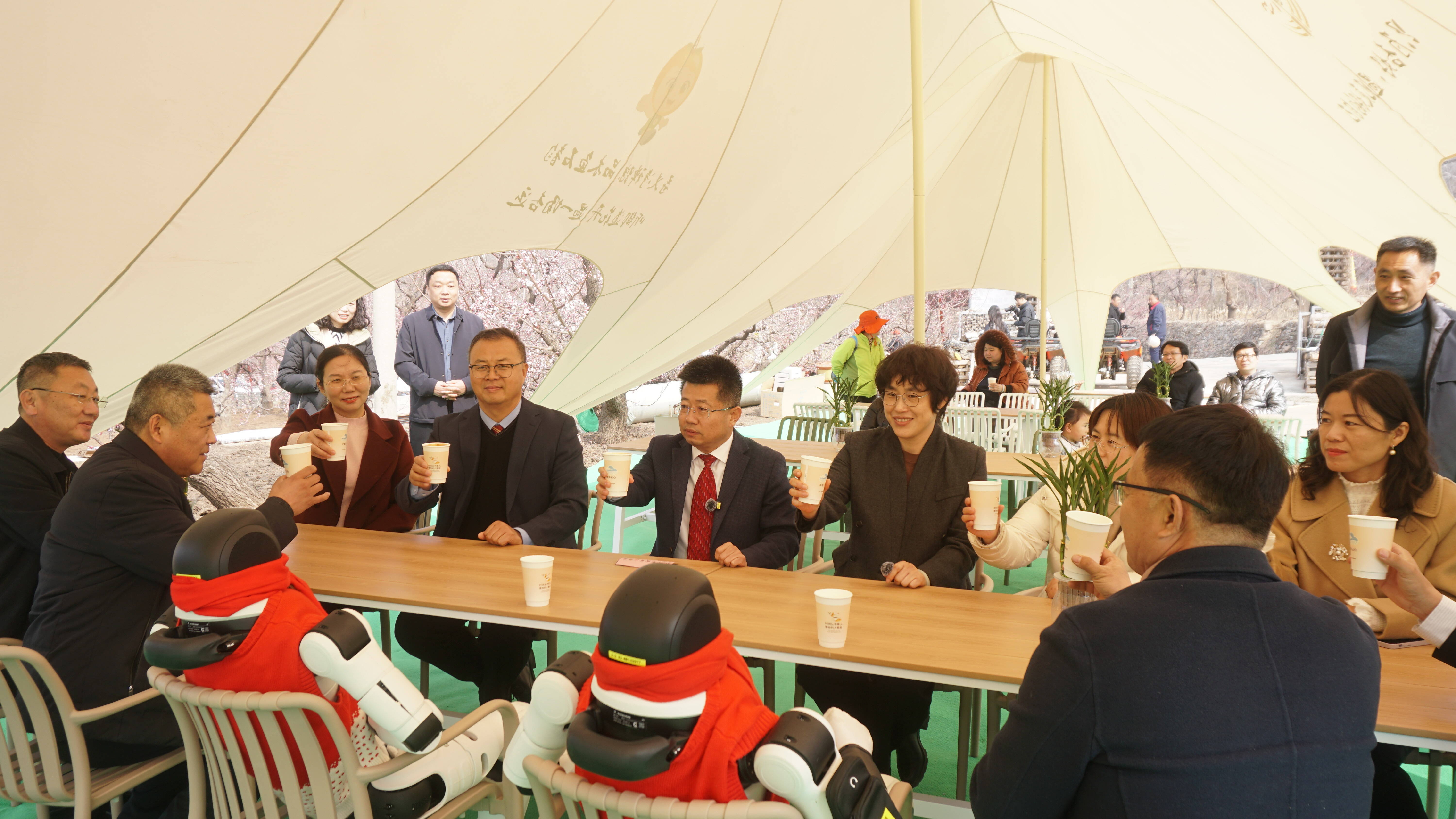 本届杏花季,亮点不止在花海。AI机器人全程参与迎宾导览、歌舞互动,无人机腾空展卷拉开杏花季帷幕,以硬核科技重构赏花体验;山地摩托沿花间赛道疾驰而过,滑翔伞自百米高空俯瞰花海,以“地上驰骋+云端览胜”双线并进;以艺术为纽带串联多条旅游线路,将休闲庭院、艺术赏花园内打卡拍照、非遗手作、围炉煮茶等元素融合串联,引导游客沉浸式游赏;精心设置杏花文创IP、特色艺术标志打卡点,吸引游人驻足留影,实现张夏春日美景在各网络平台的持续刷屏;以“巨幸运·御道花开”艺术文创IP为背景,以低碳环保理念引领乡村振兴新路径;高标准增设休闲露营地、特色住宿矩阵差异化布局,推动游客从“顺便游”向“深度留”转变;依托“扁鹊故里”底蕴,推出杏花禅修、木鱼石药浴、木鱼石火炕等康养体验及养生膳食,深入打造康养旅游示范区;现场设置“黄河大集”农特产品、非遗市集展销区,为深度“游购乡村”提供多样化产品;统筹布局文化展演活动,连日上演系列民俗表演,将人气热度转化为消费增量,实现社会效益与经济效益的双提升。