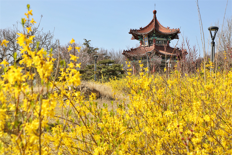 3月至4月,龙泽湖公园的杏花、连翘与榆叶梅将公园装点得金红相间、粉黛相宜,色彩明快,适合全家出游踏青。